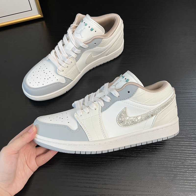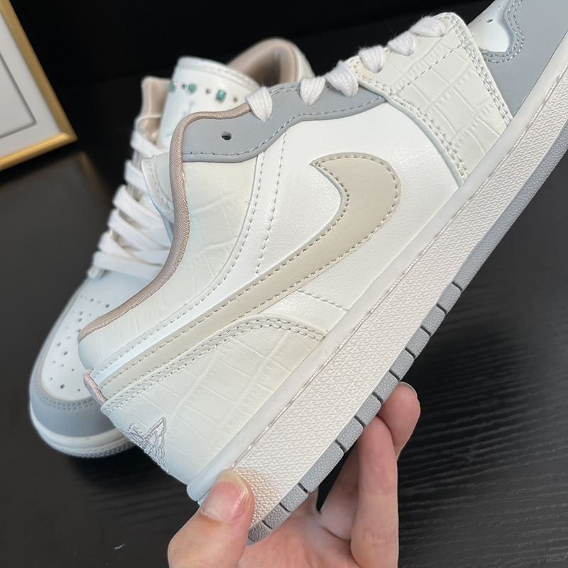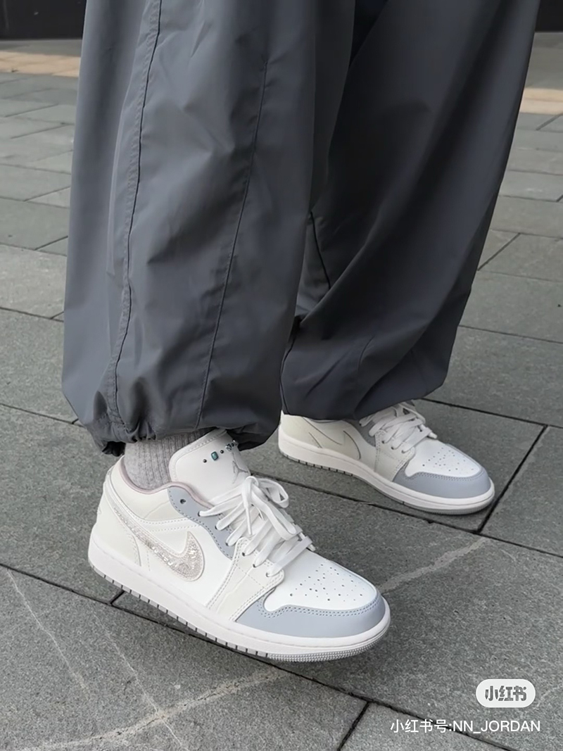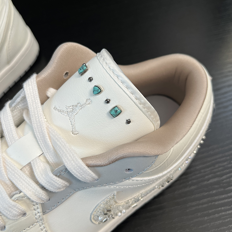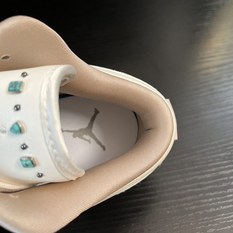 谁懂啊!古玩风吹到AJ1了??🥴 经典配色超级耐看,低饱和奶霜感,鞋舌上镶嵌绿松石配色BlingBling甜而不腻🤩~❤️~