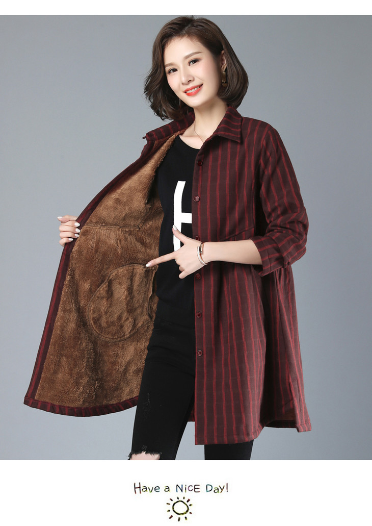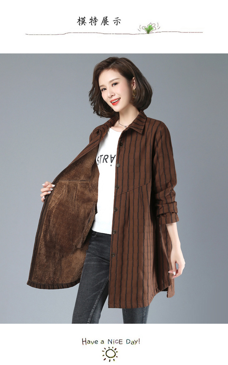 W-6998 加绒衬衫女长袖2020新款秋冬装韩版宽松加厚外套外穿衬衣
