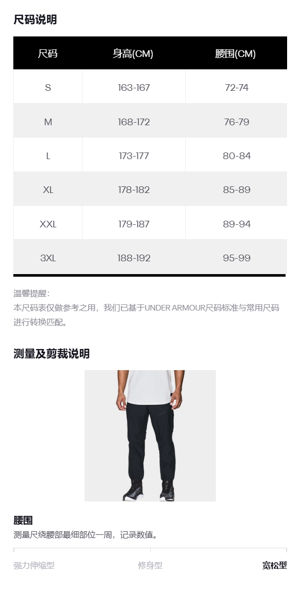 【城市野趣系列】安德玛男子户外加绒工装长裤1389298-001