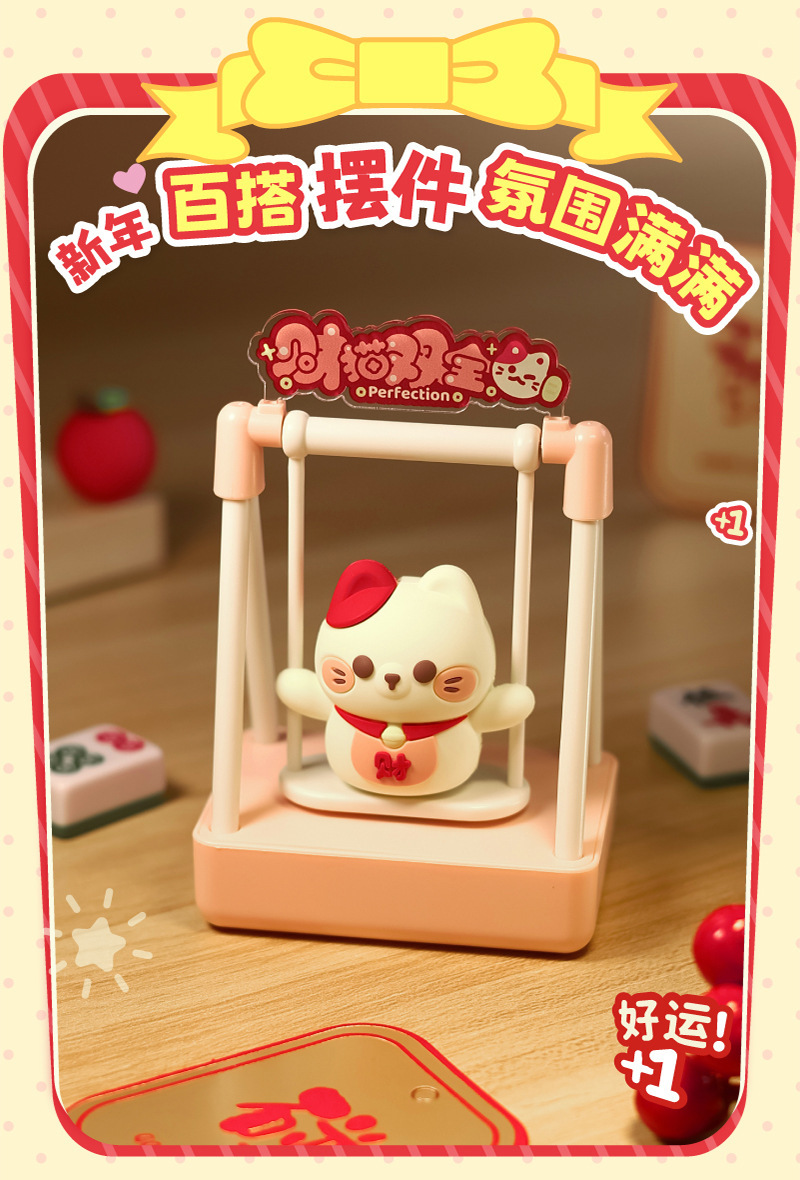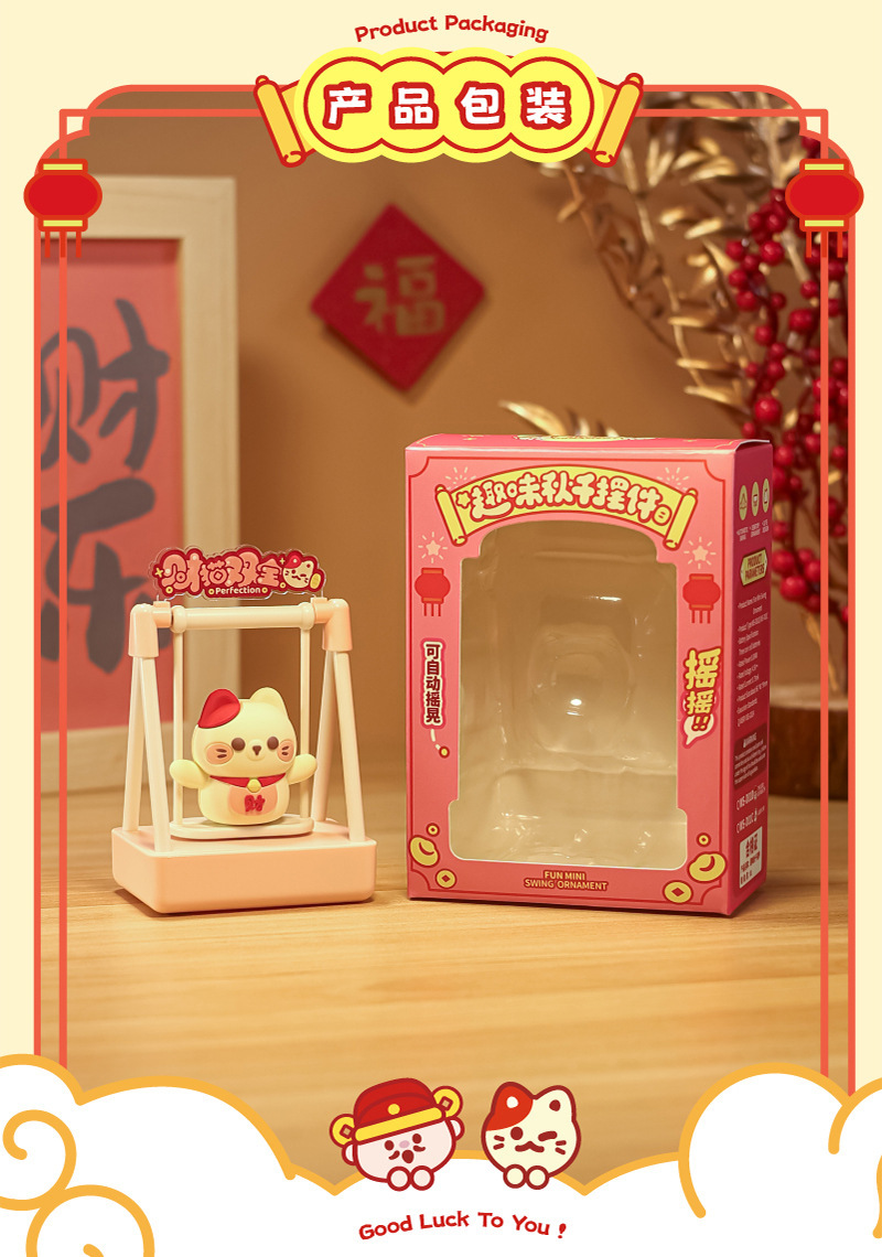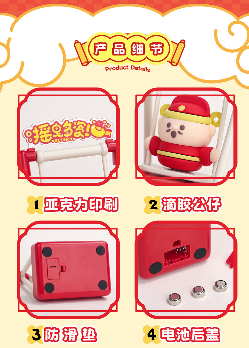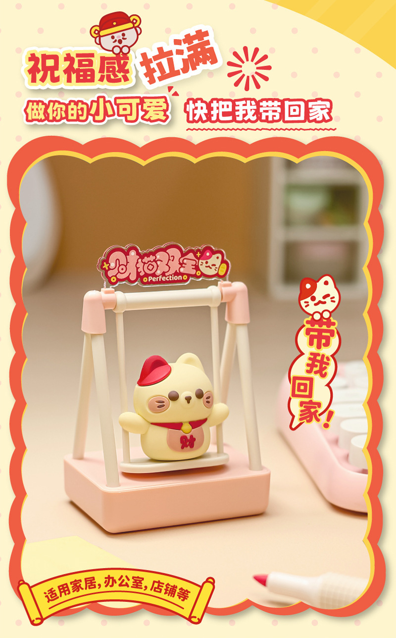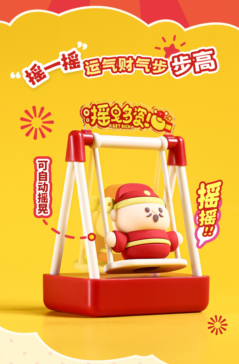 【趣味秋千摆件,秋千一摇烦恼消~】新款招财猫财神爷荡秋千摆件 办公室桌面车装饰 解压儿童礼品玩具-QQ