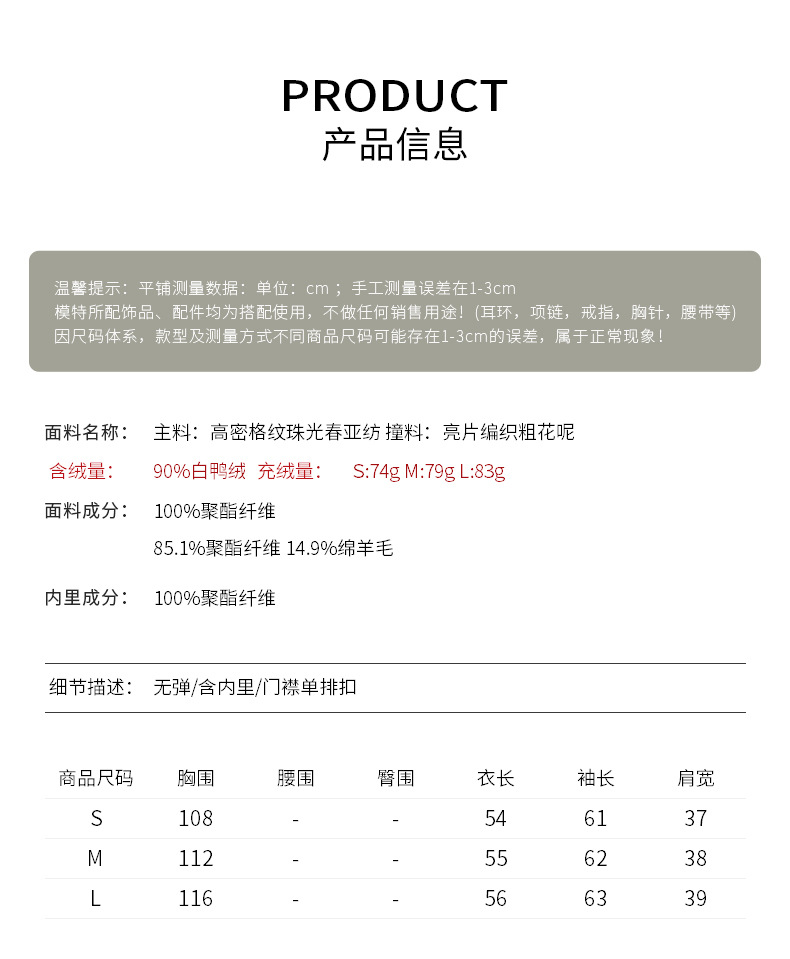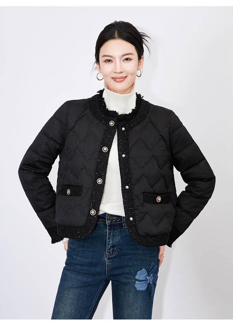 【高货wl】全新升级【铂金会员367/天猫499/差价132】(05855) 洛诗琳小香风轻薄羽绒服女冬季短款时尚高级感保暖外套