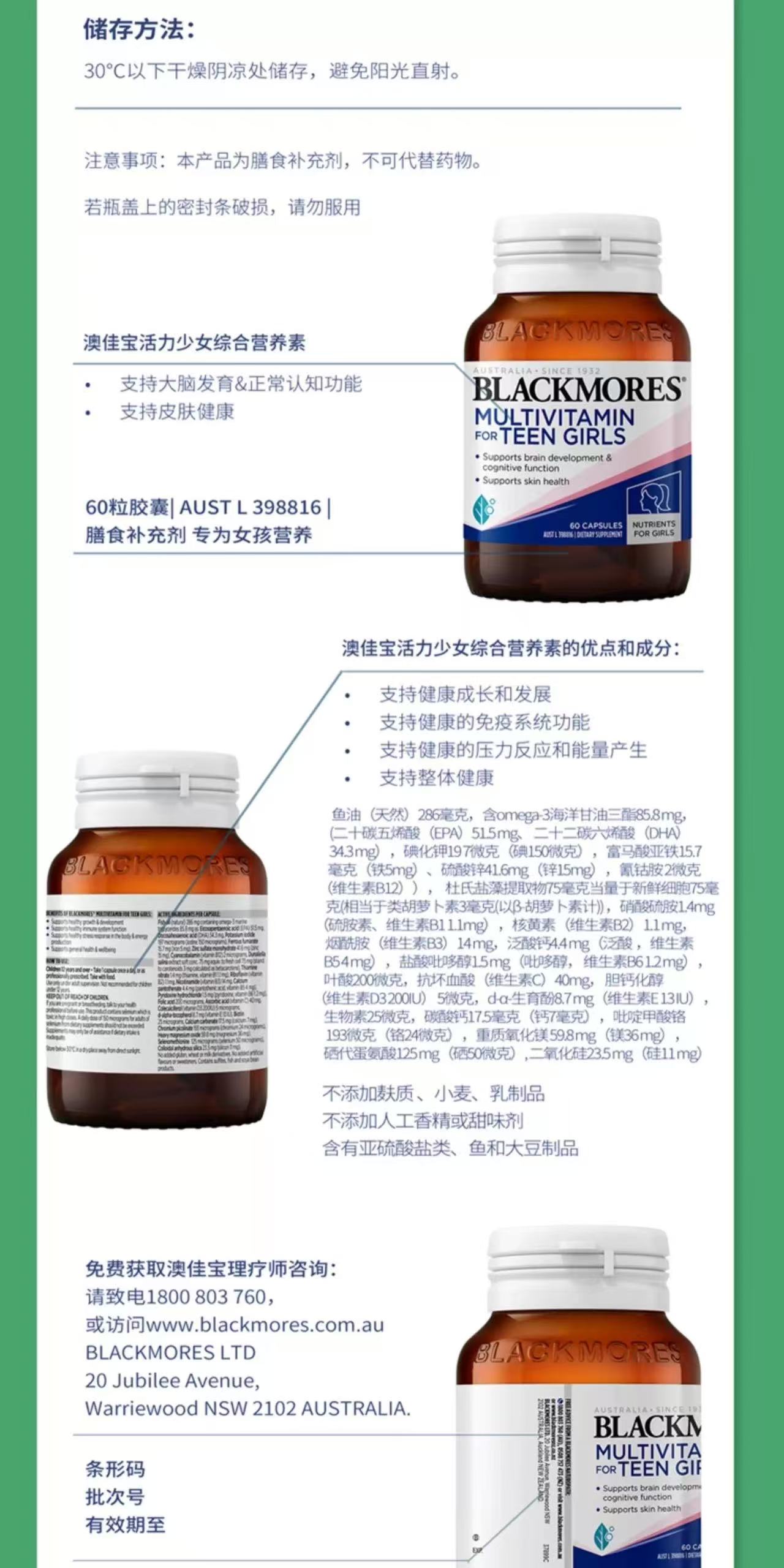 Blackmores澳佳宝青少年复合维生男女素60粒