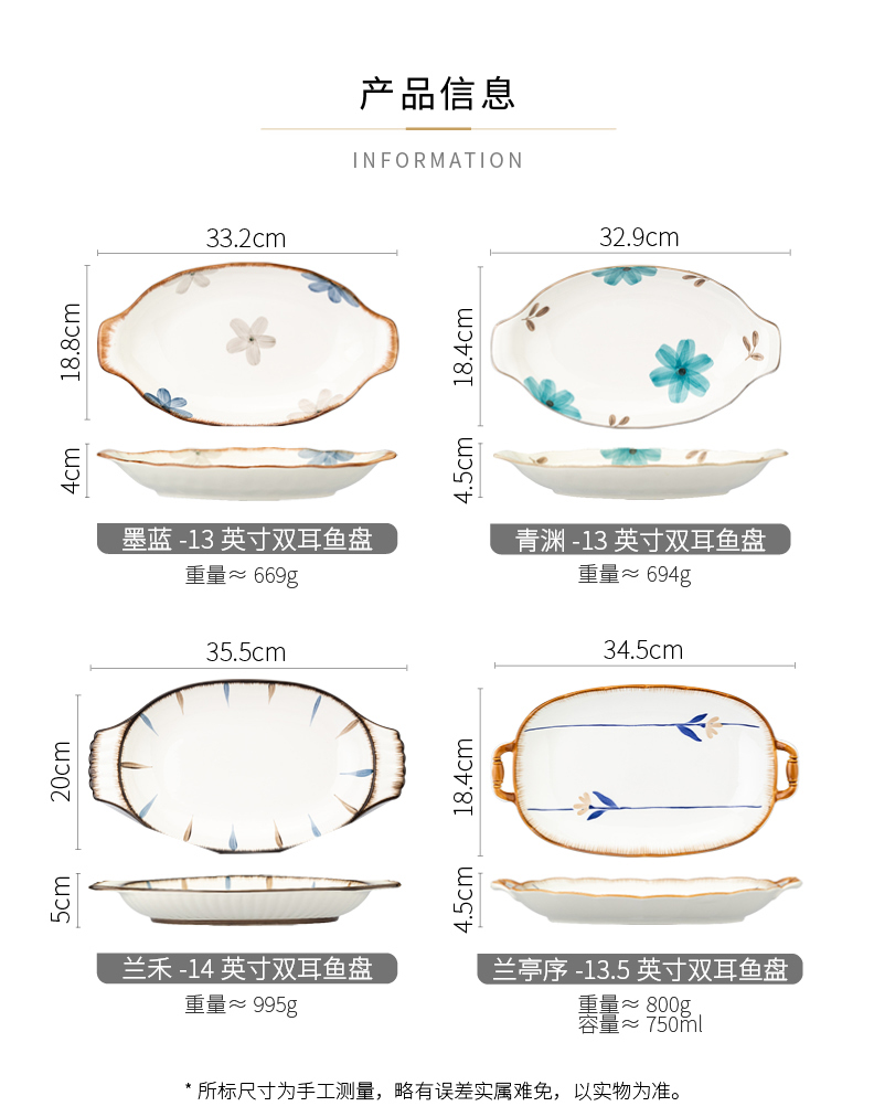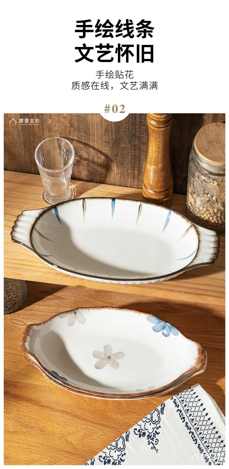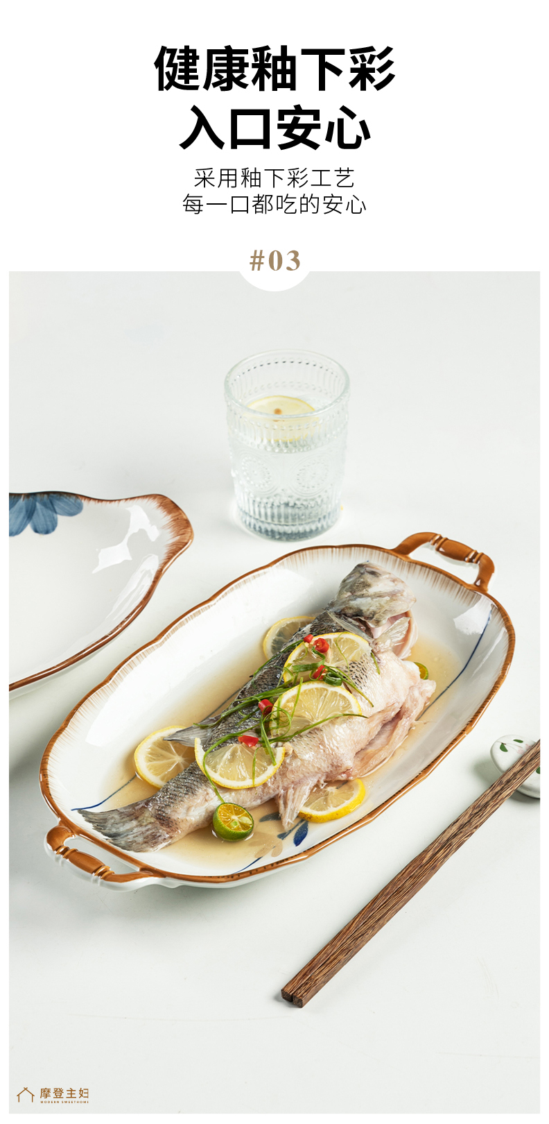 摩登主妇双耳鱼盘家用2024新款蒸鱼盘子鱼碟陶瓷餐具大号菜盘深盘