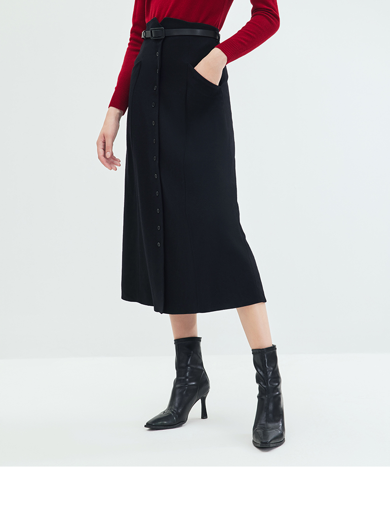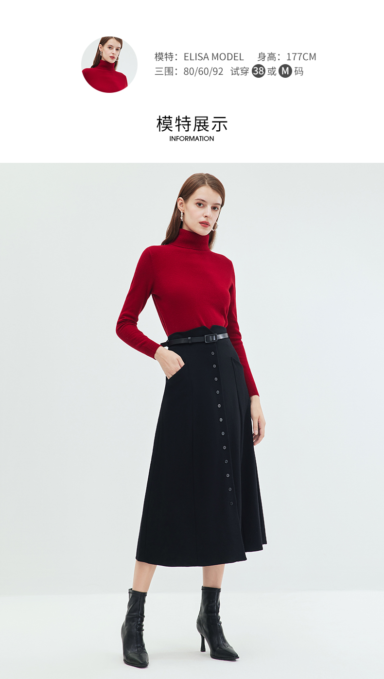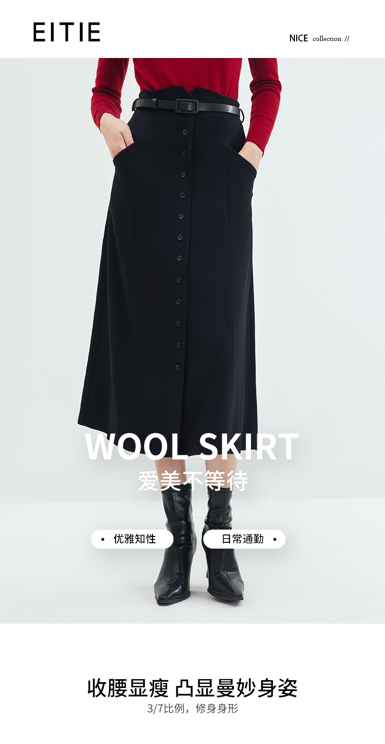 EITIE爱特爱冬季新款气质修身显瘦高腰半裙半身裙7206903