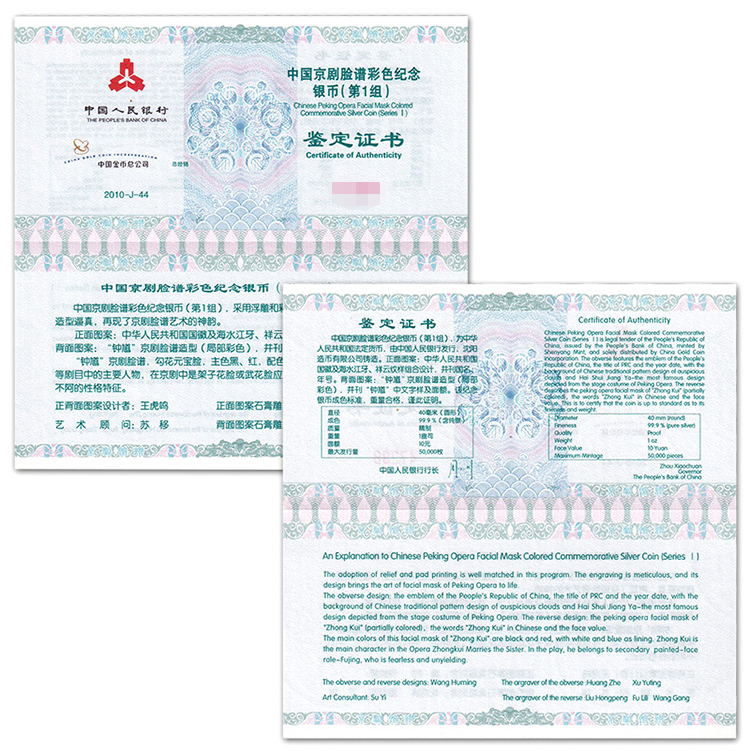 中国京剧脸谱 典韦 钟馗 彩色纪念银币(第一组)