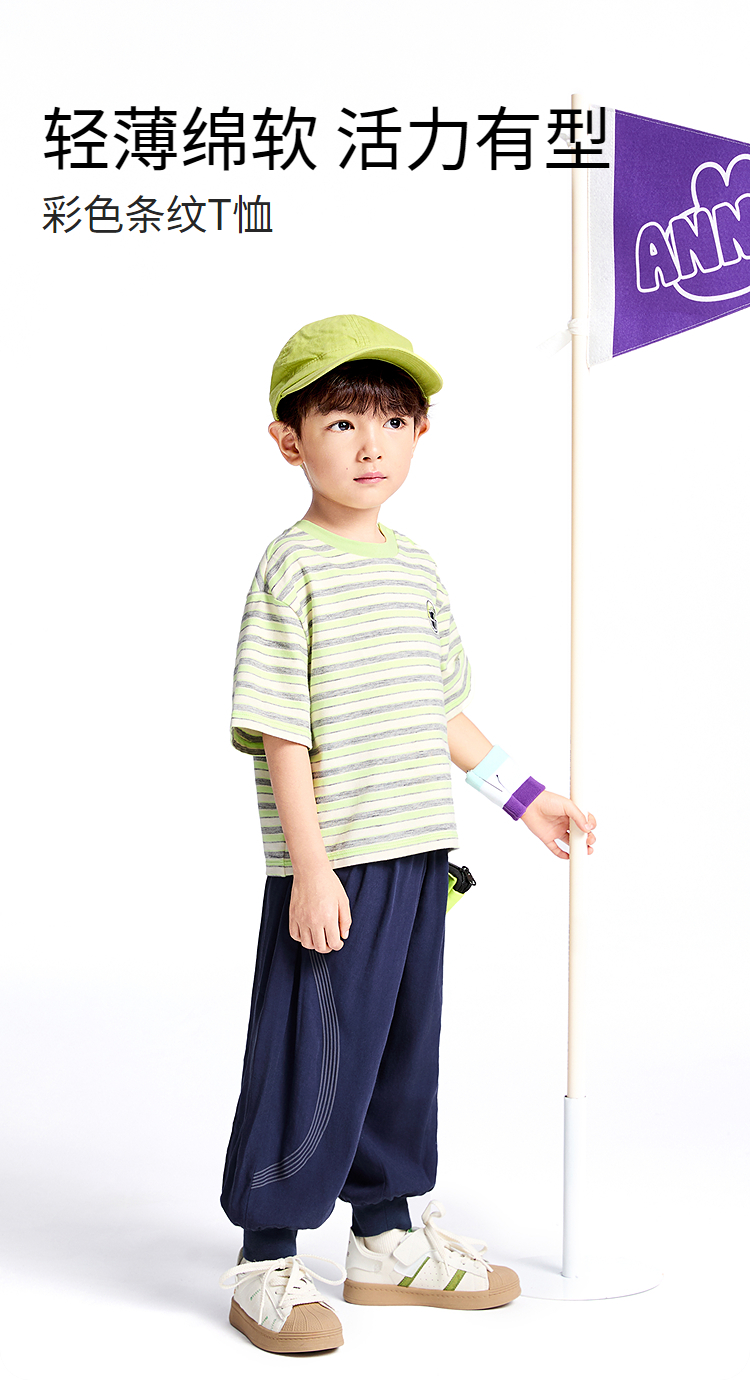 男童圆领短袖针织衫夏季新款安奈儿童装实体店同款XB521600