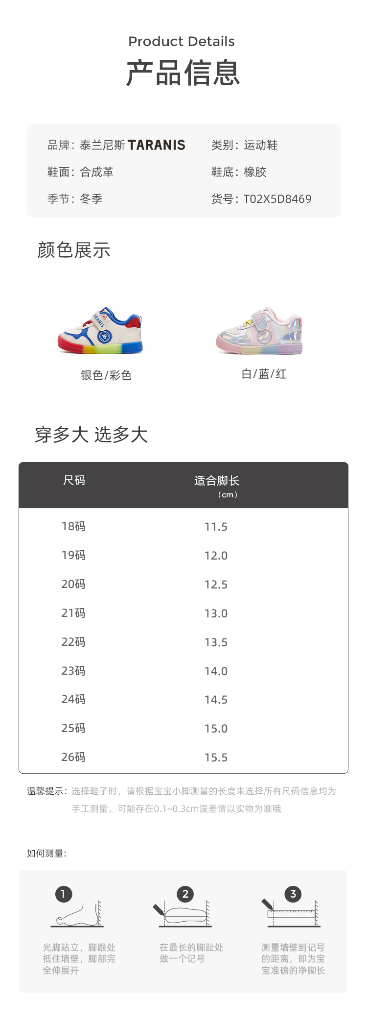 【泰兰尼斯】【新品】小童段冬款加绒保暖炫酷闪灯鞋运动鞋T02X5D8469