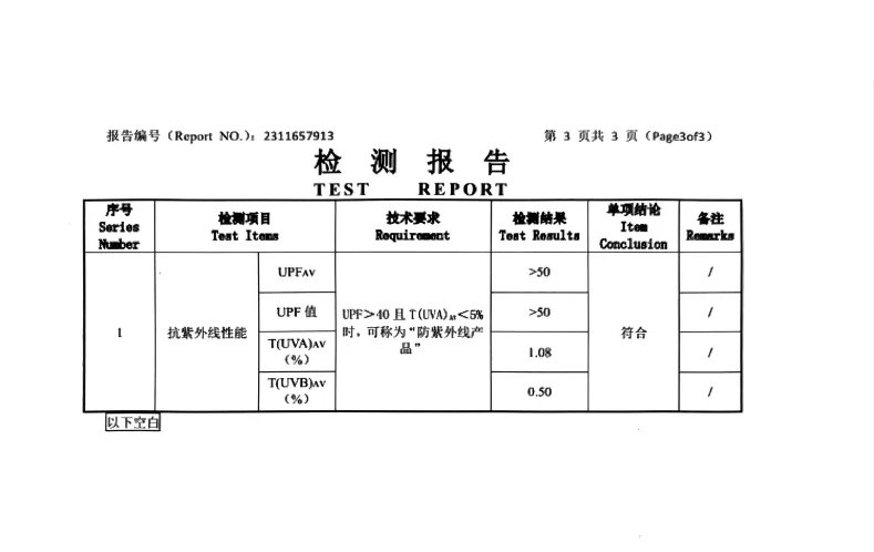 这款UPF50+带检测报告
