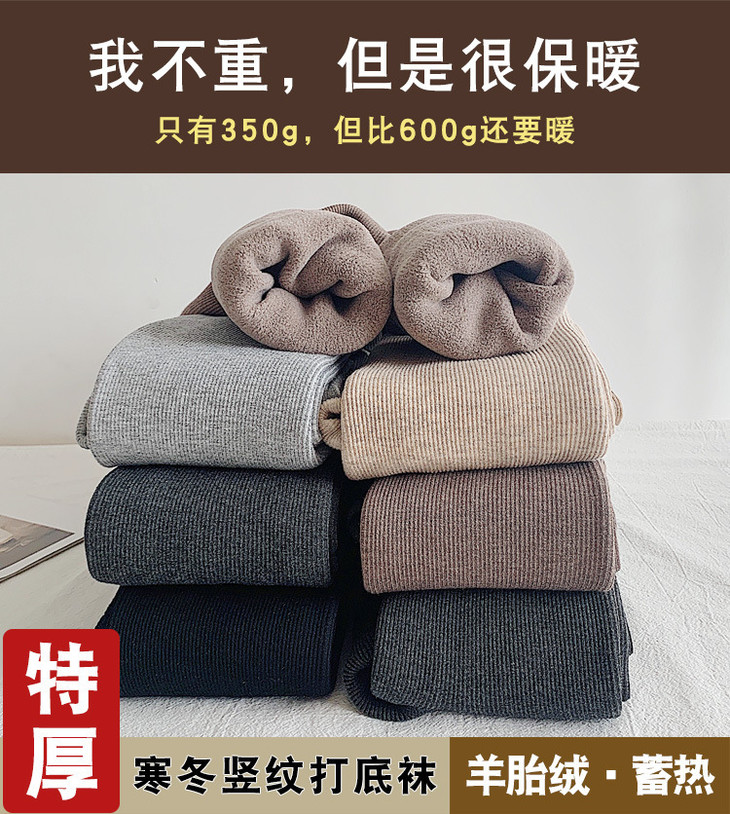 【新款1900D竖条纹保暖打底裤】女希秋冬1900D高腰加绒加厚打底袜