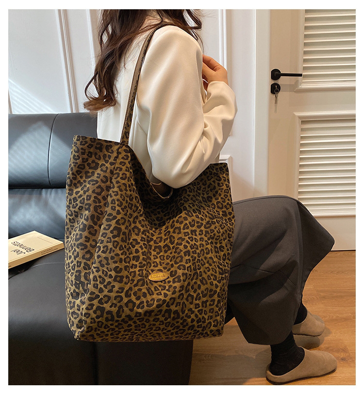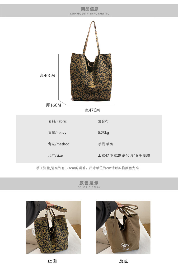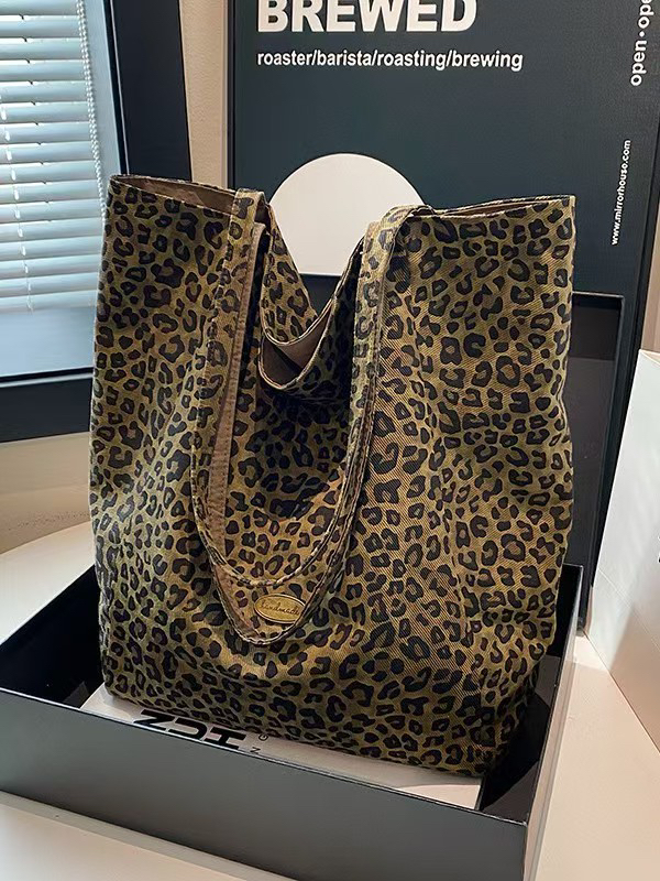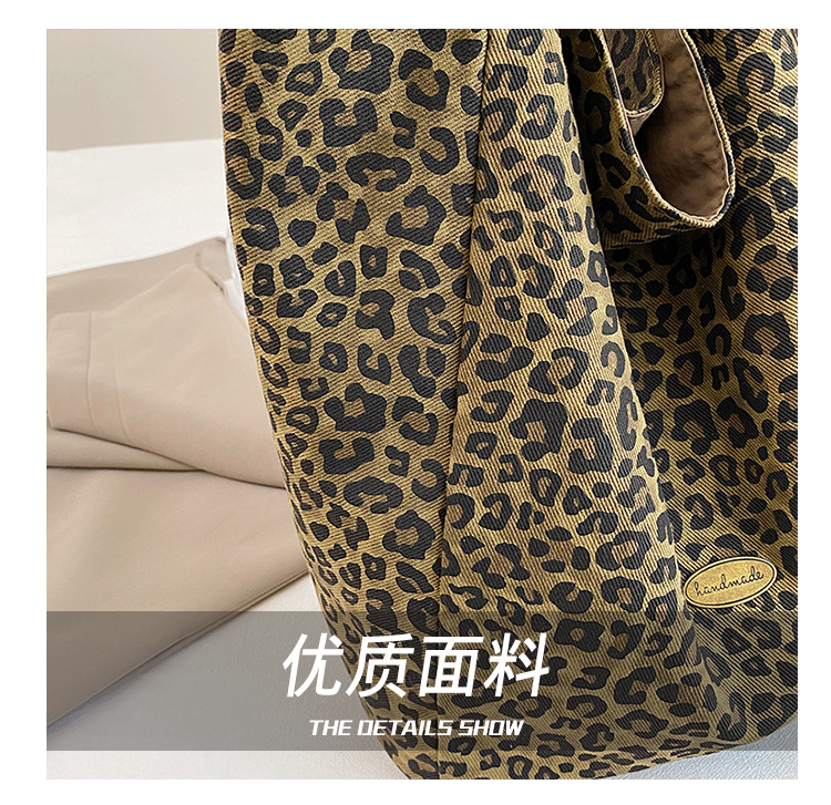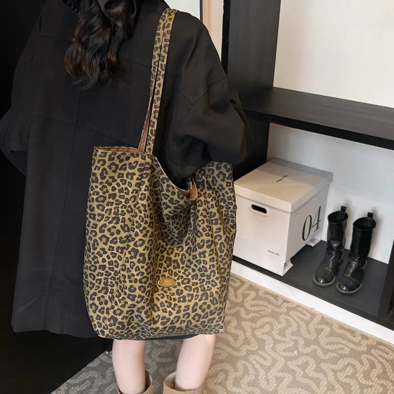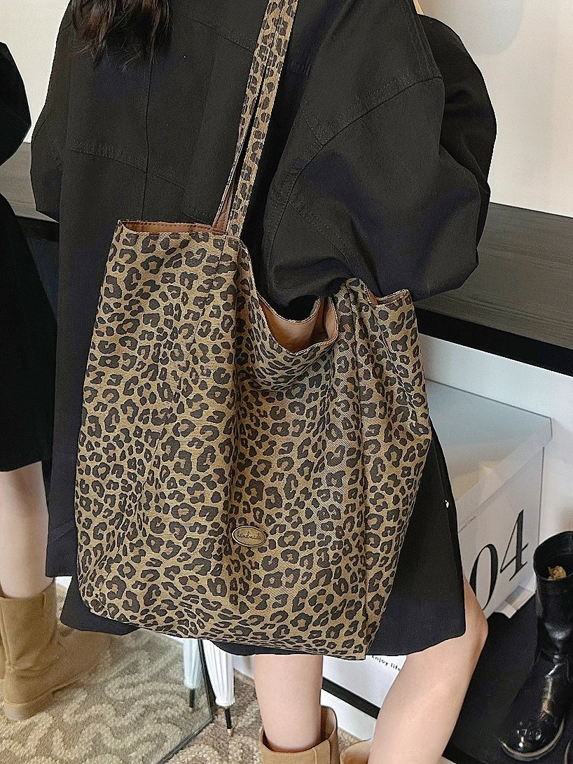 分镜头设计师品牌小众豹纹帆布包大容量正反两用单肩包简约休闲上班通勤包