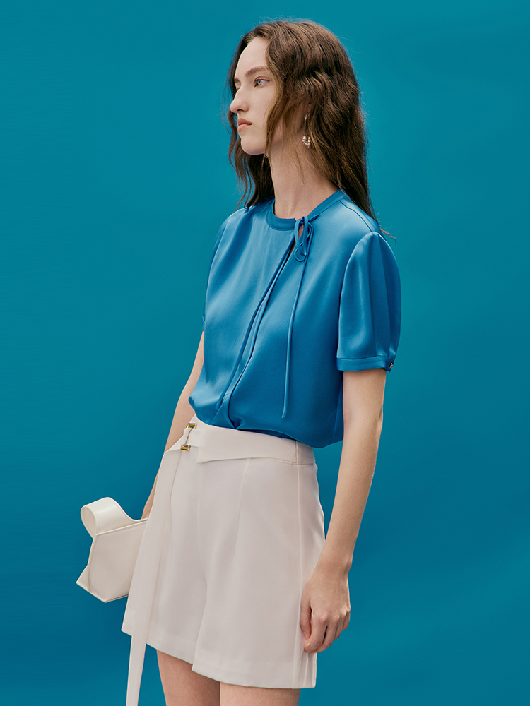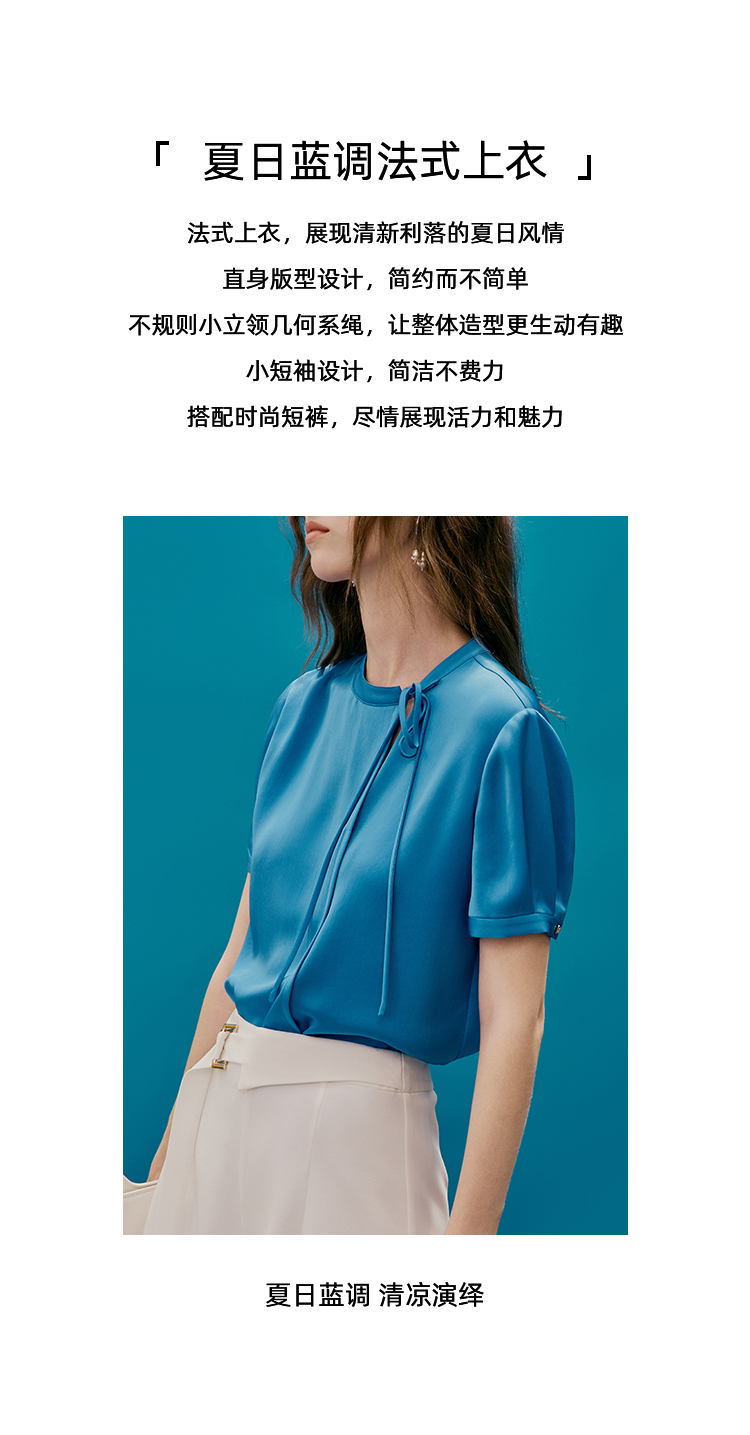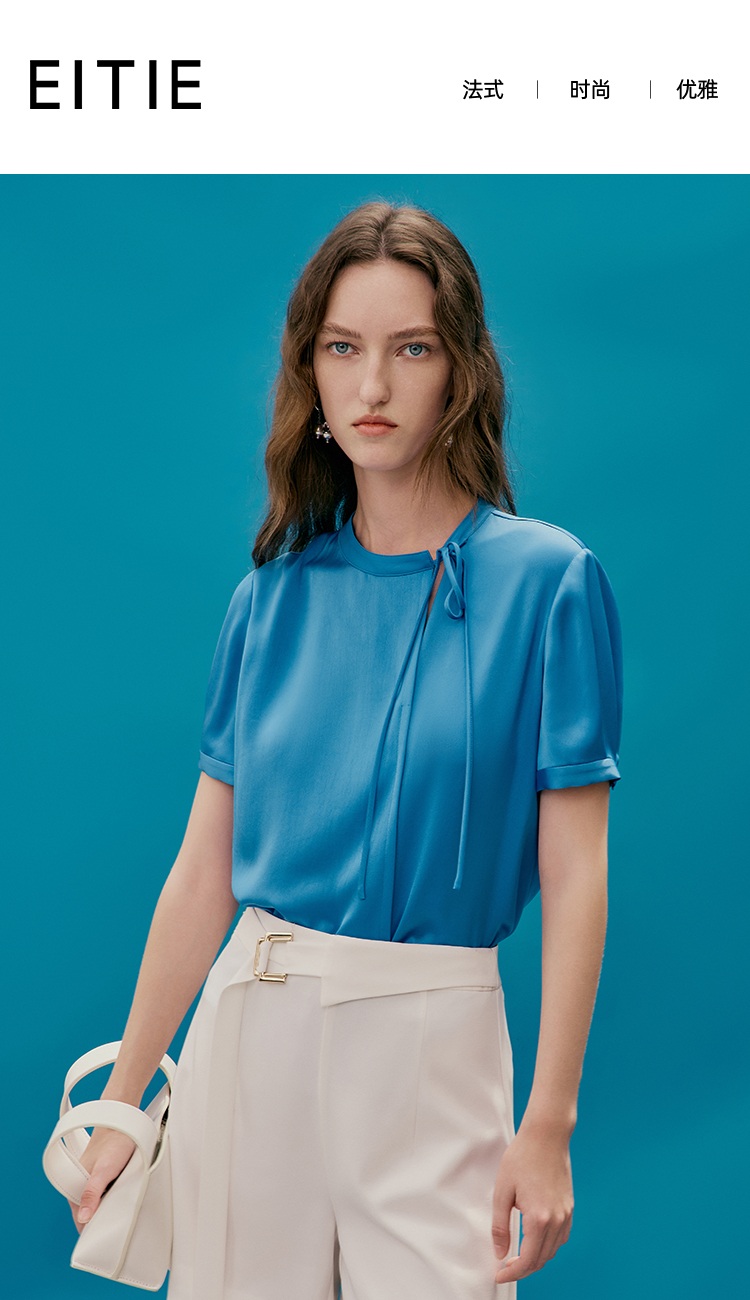 EITIE爱特爱夏季新款温柔百搭显瘦飘带小上衣7413118