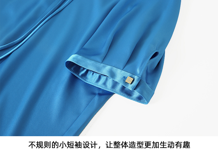 EITIE爱特爱女装初秋季新款薄纱透视五分袖百褶连衣裙长6007771