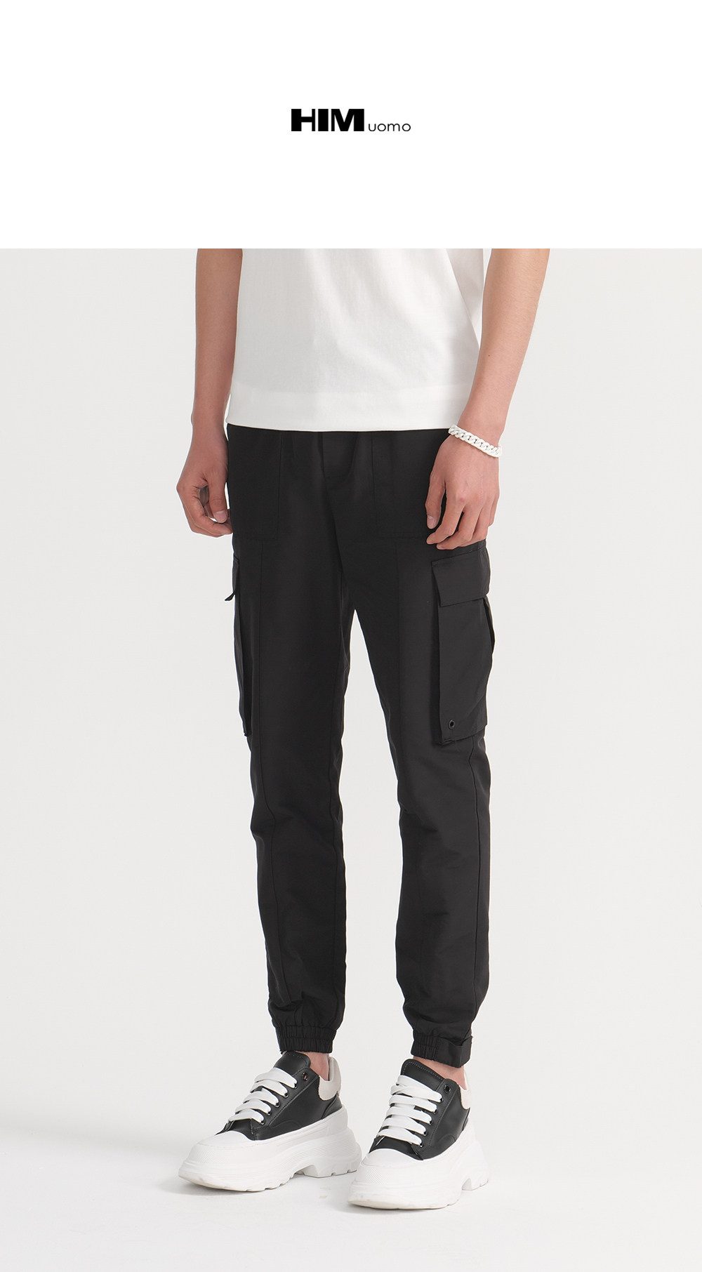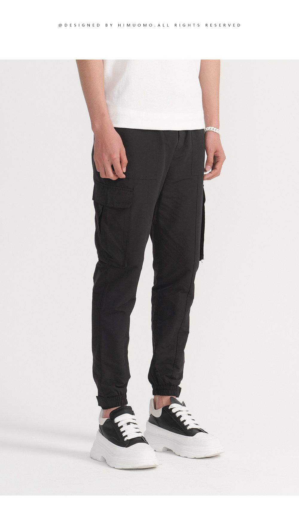 HIM漢崇 休闲裤男潮流新款简约工装口袋舒适束脚萝卜裤 2026夏季