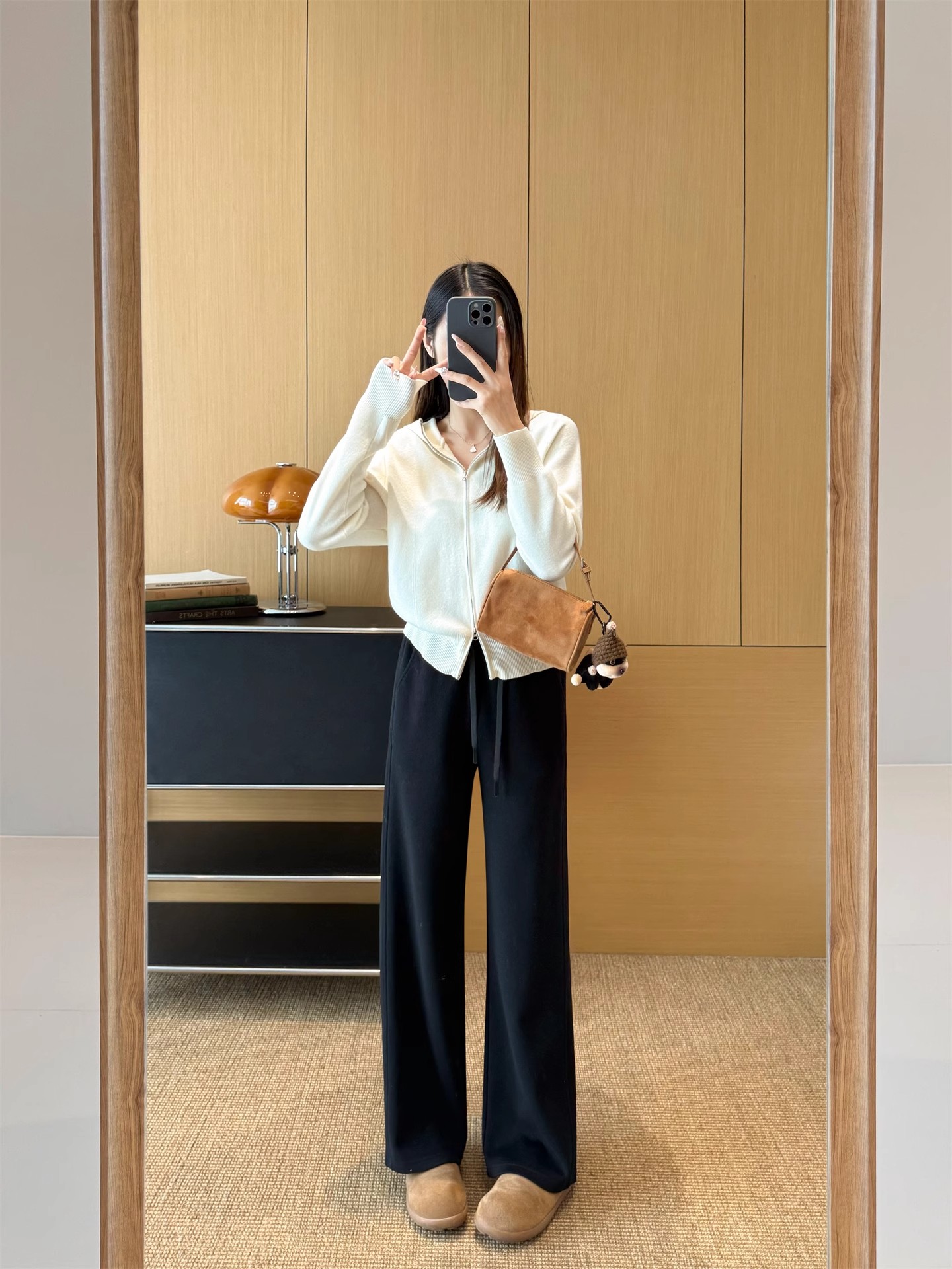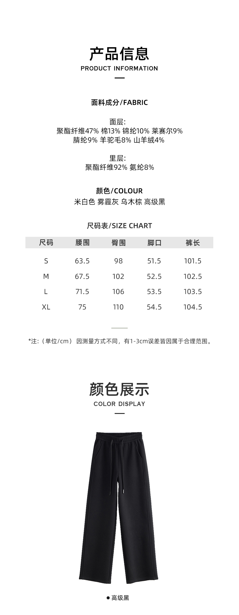 【清仓】秘鲁阿尔巴卡羊驼毛直筒抽绳毛呢加绒裤 2655 驼毛+山羊绒材质 上身保暖又显瘦;极简阔腿版型 高密加厚织就,内层拉毛处理,包容各种身材
