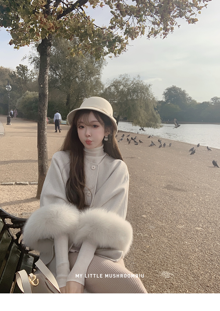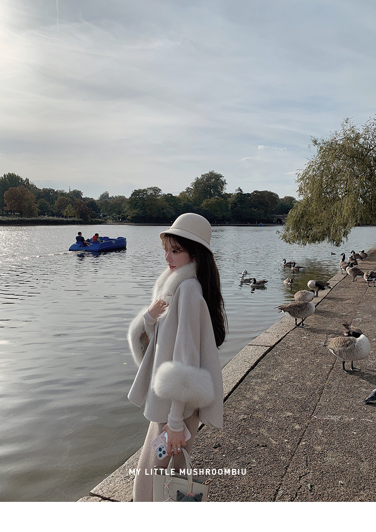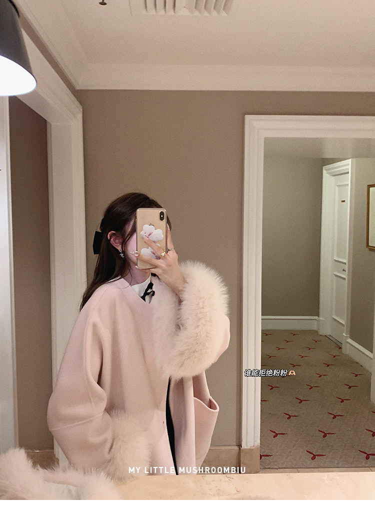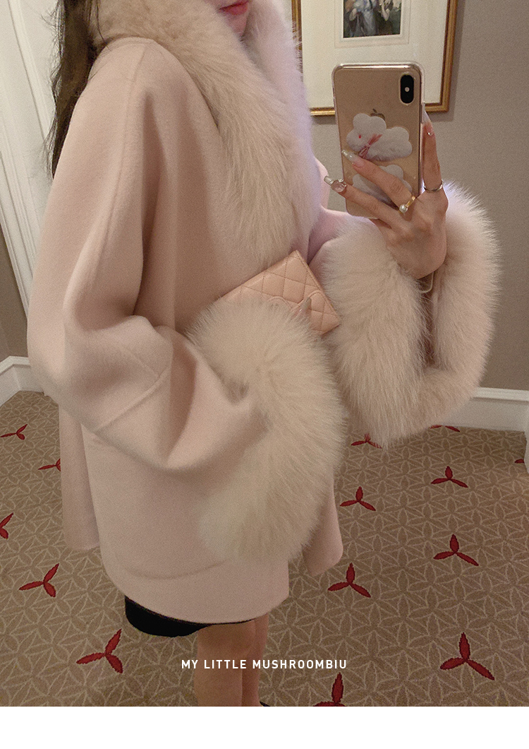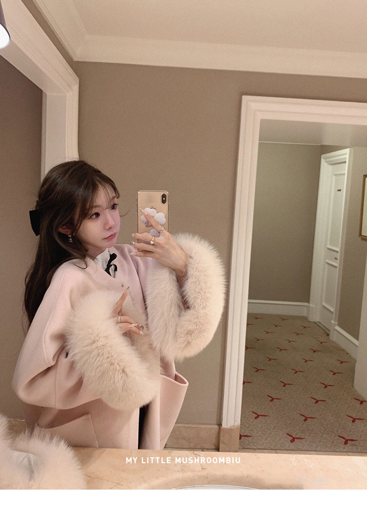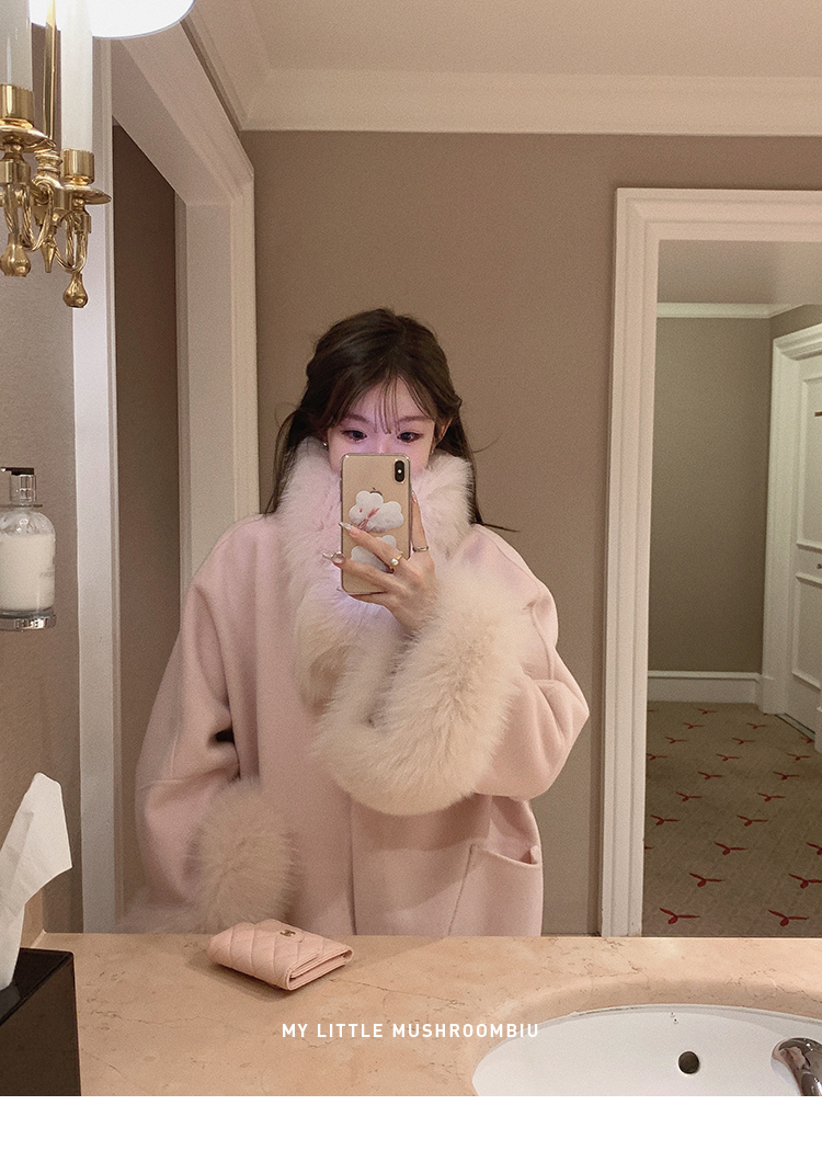 金蘑菇菇 伦敦甜心/娇贵少女氛围 狐狸毛毛领外套