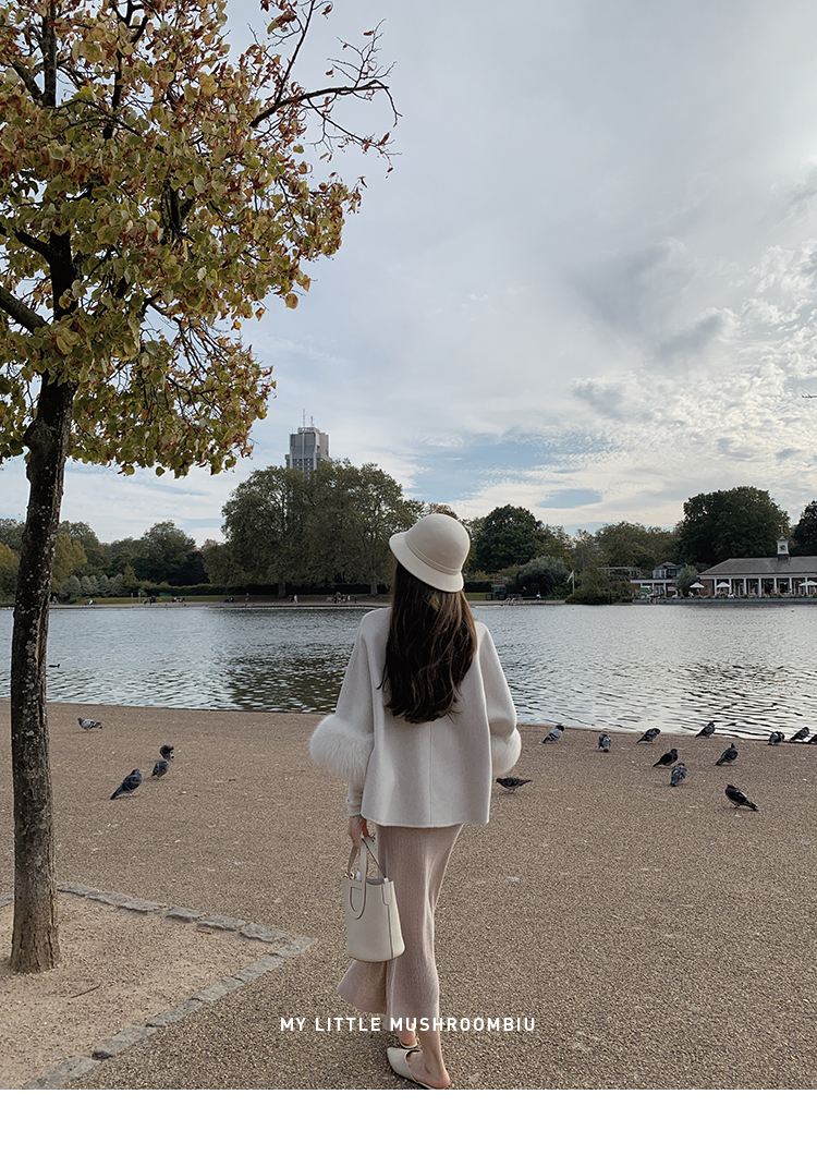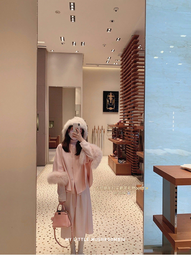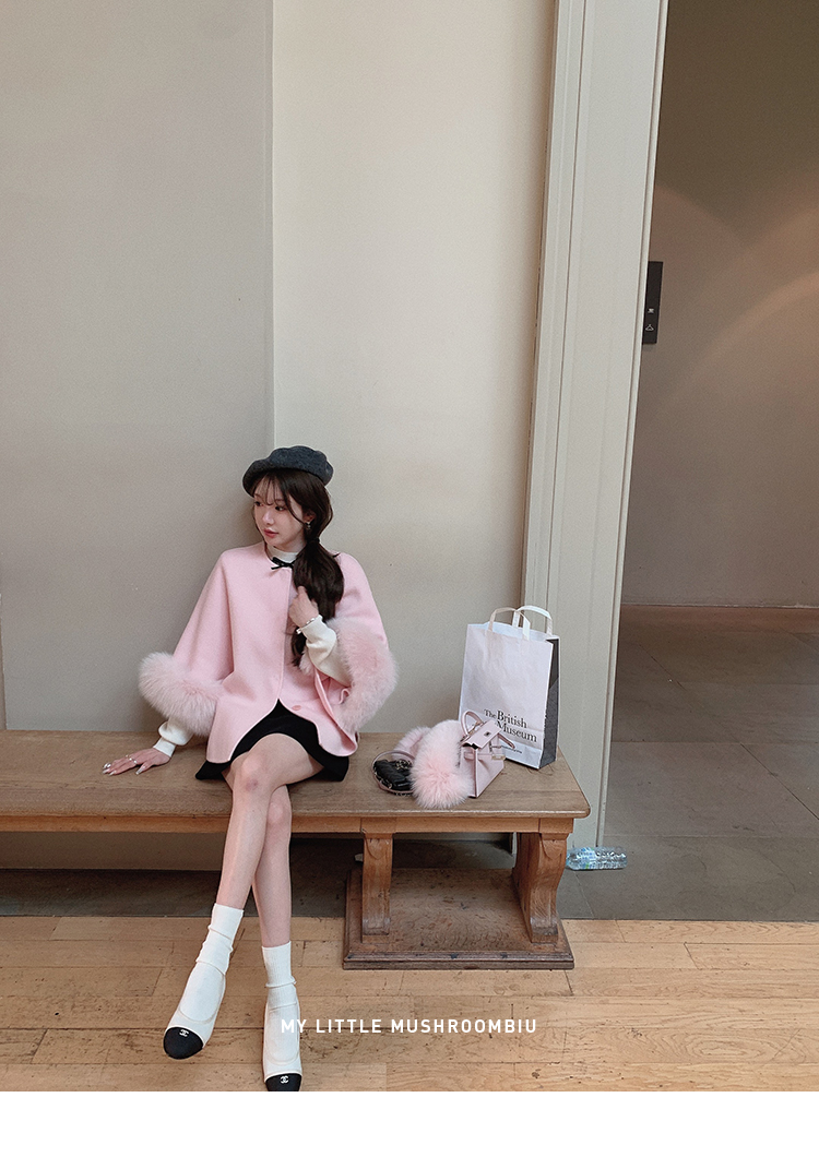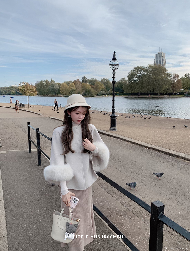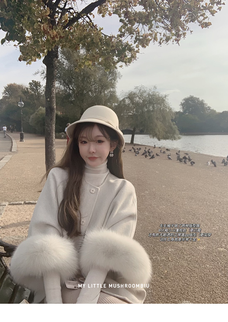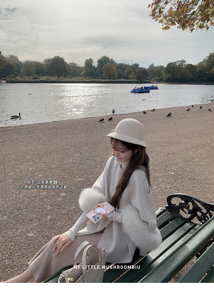 金蘑菇菇 伦敦甜心/娇贵少女氛围 狐狸毛毛领外套