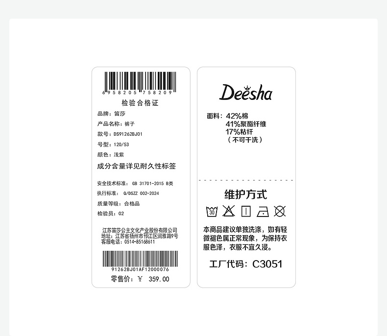 笛莎/Deesha 2026年夏季新款中童裤子针织束脚裤