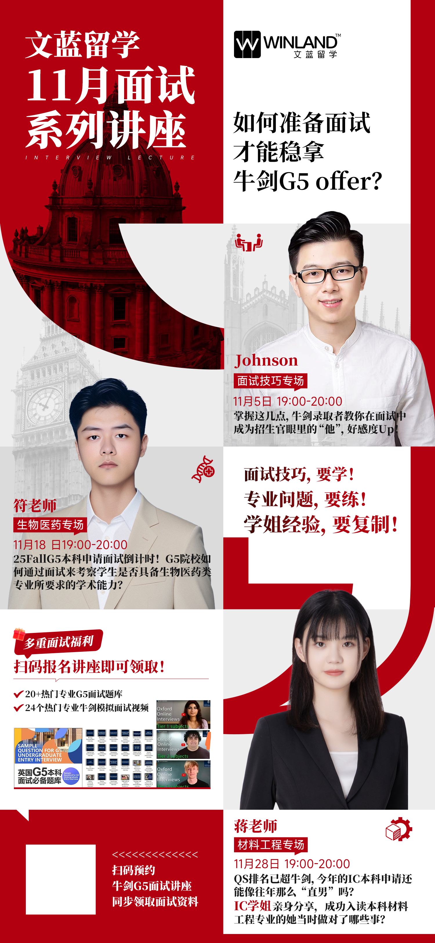 【文蓝留学11月面试系列讲座】如何准备面试才能稳拿牛剑G5 offer?