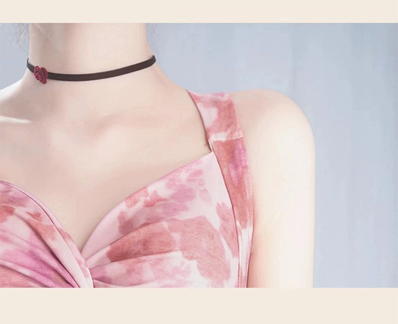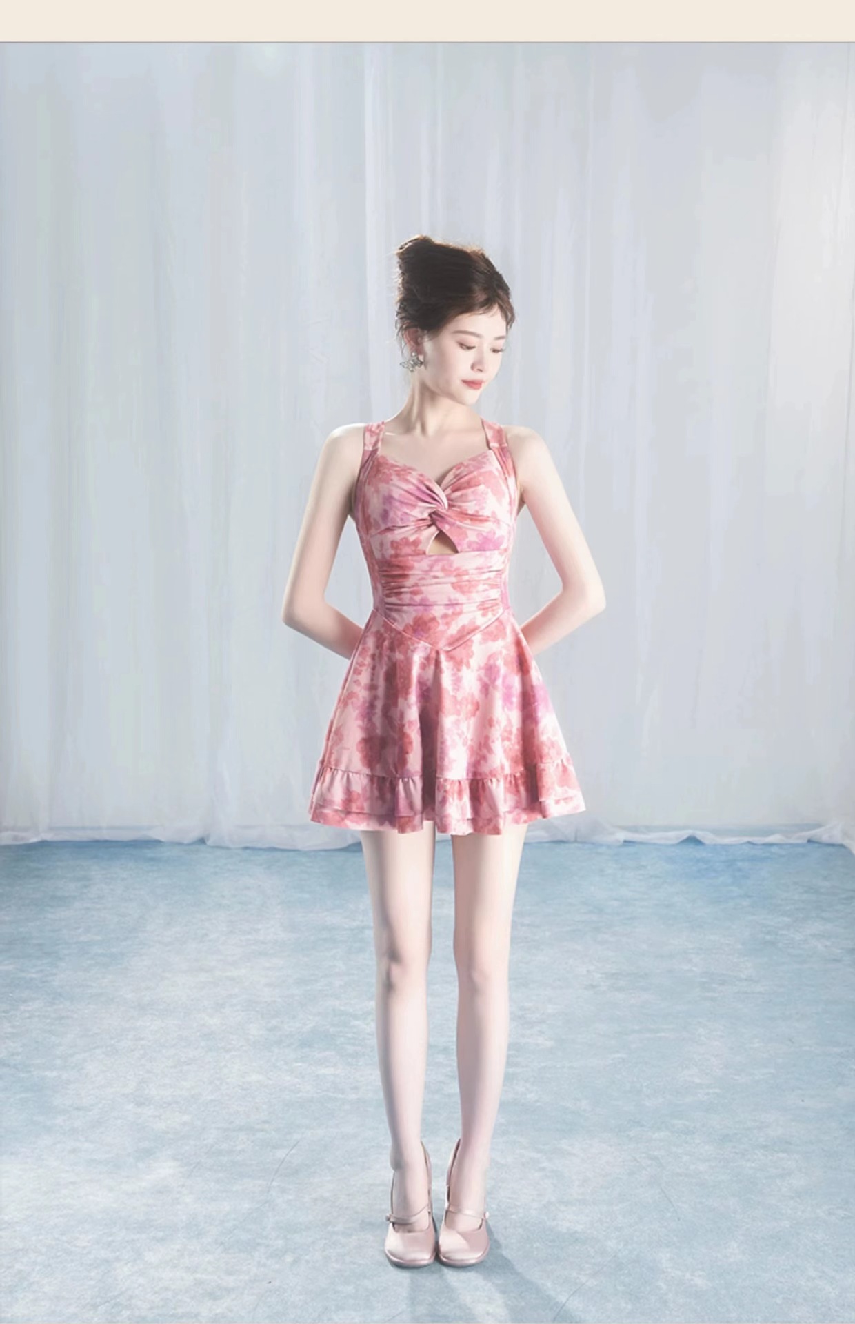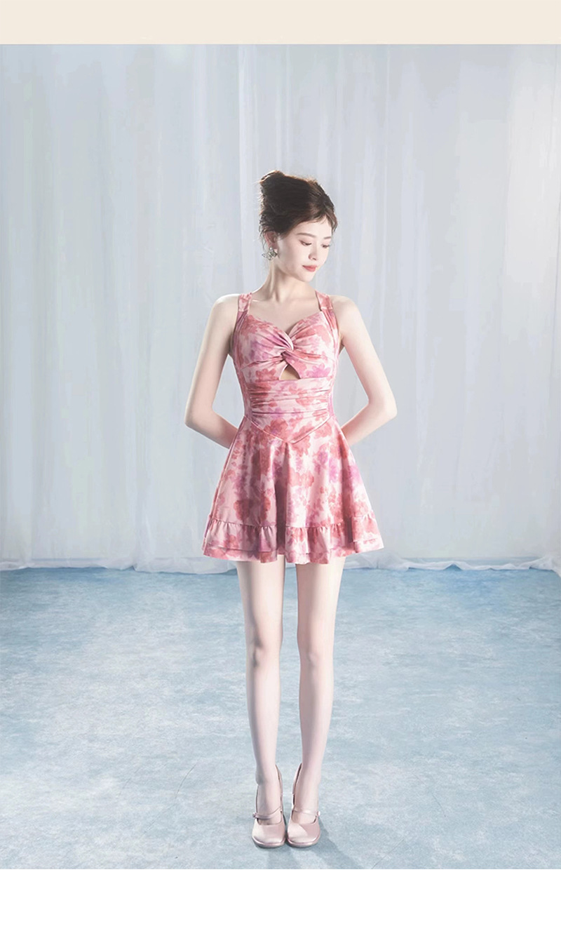 【时尚印花裙泳衣女】连体吊带式 保守显瘦修身露背少女泳衣 泡温泉度假泳装