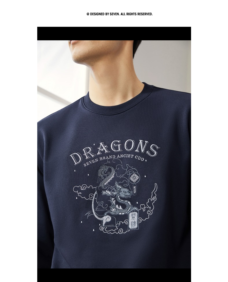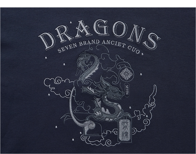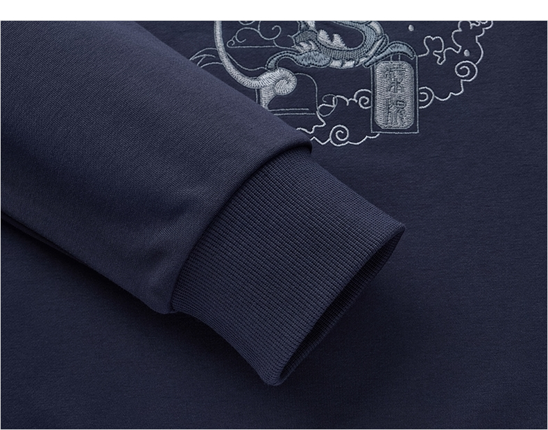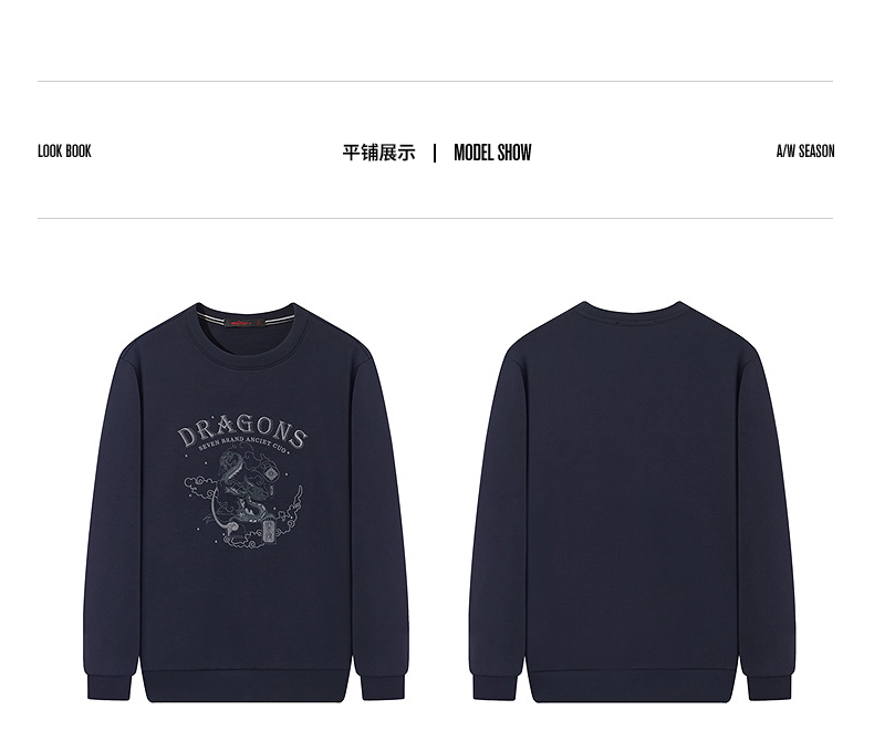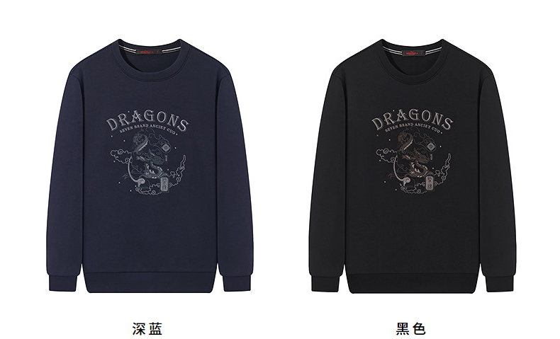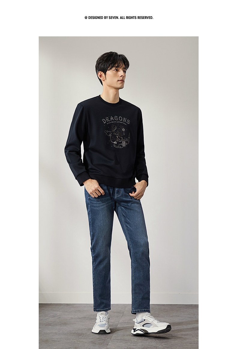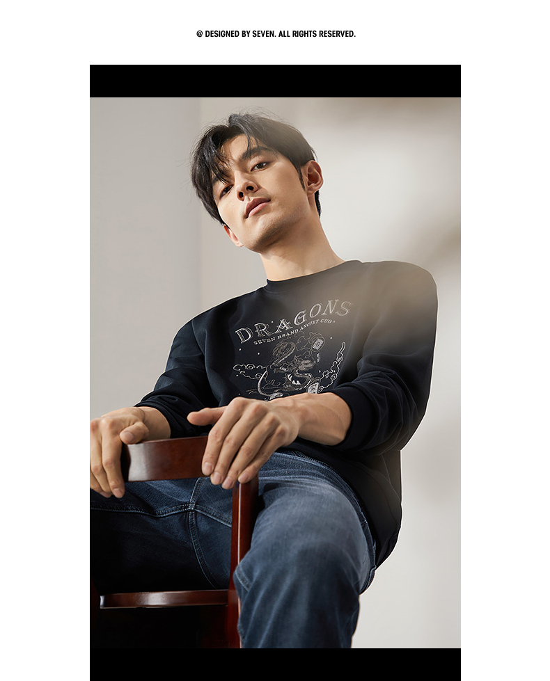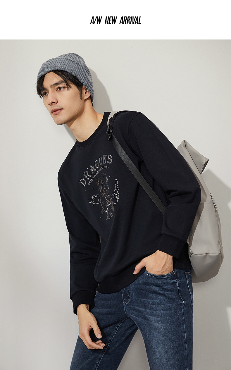 【保型索罗纳】柒牌刺绣圆领卫衣男2024秋季新款宽松休闲套头上衣 127W70350