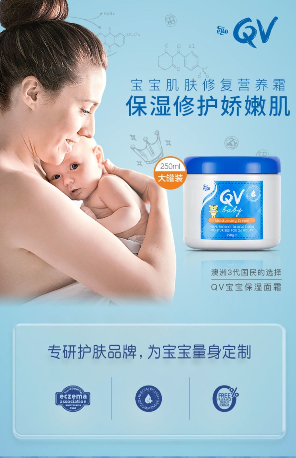 Ego QVbaby澳洲宝宝面霜身体乳润肤霜滋润保湿舒缓干红小老虎250g