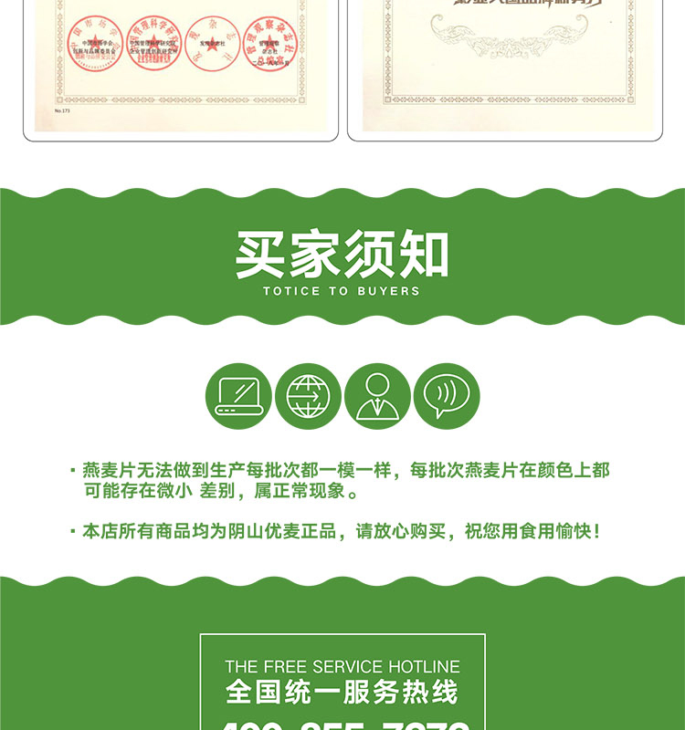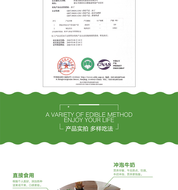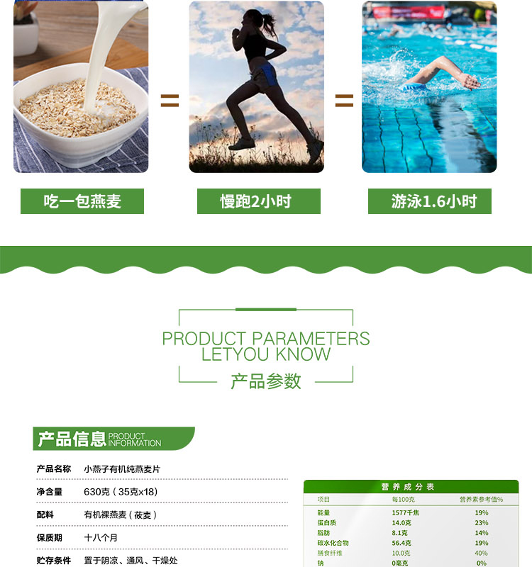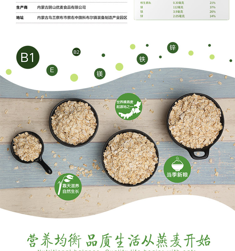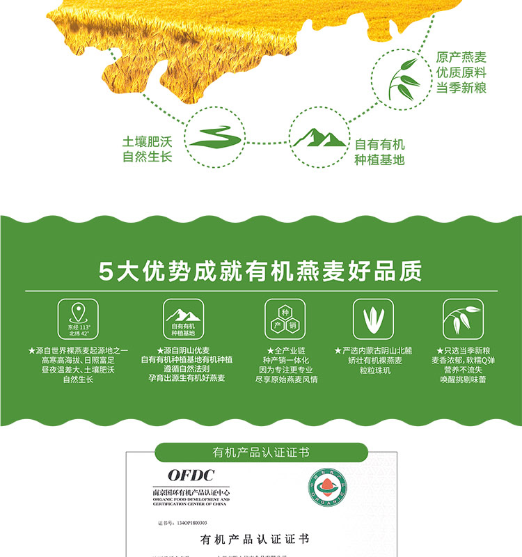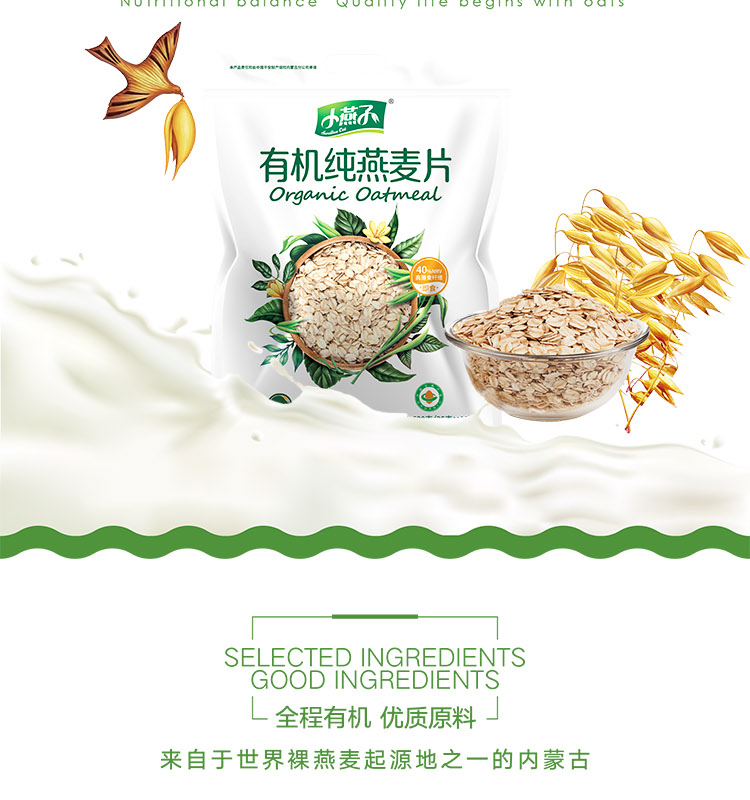阴山优麦有机纯燕麦片630g/袋*2