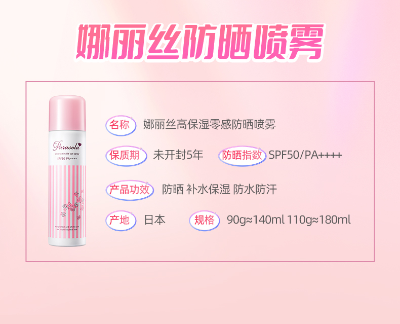 【香港直邮】日本Naris Up娜丽丝保湿清爽防晒喷雾粉色/紫色 SPF50