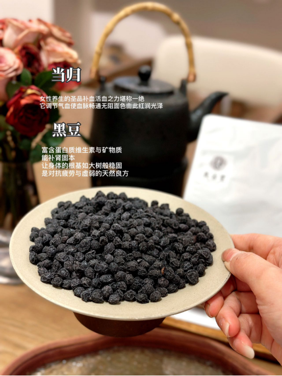 黑豆,堪称营养宝库。丰富的蛋白质为身体机能运转提供基础支持 而其中的膳食纤维有助于肠道健康维持身体正常代谢 黑豆在传统养生中以补肾益精闻名。能够帮助我们在忙碌生活中提升精力,对抗疲劳 冰糖的加入,恰似点睛之笔。 它温和的特性不仅让整体口感更为清甜宜人,还起到了融合协调的作用, 使当归的独特韵味与黑豆的醇厚口感完美交织,形成一种独特而美妙的味觉体验
