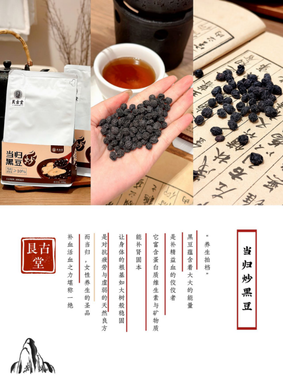 中式新滋补,与四季相应让滋补变得更简单经过三蒸三晒一炒古法工艺与美味兼具。 日常嚼一嚼,身体更健康,换季改变体质的黄金期。 当归活血+黑豆补肾,两者相搭配把体内的垃圾路障清一清,补起来事半功倍