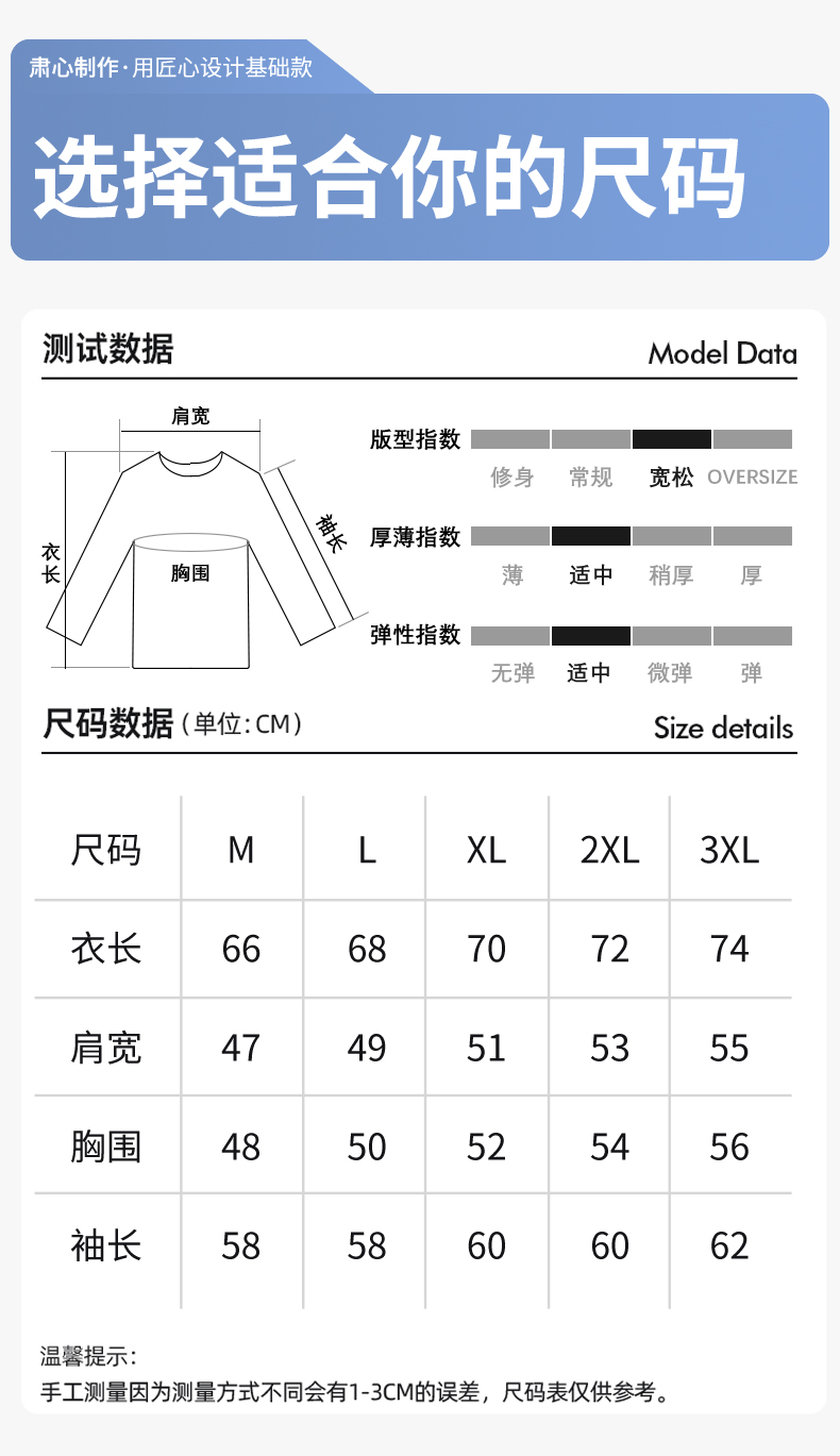 肃心匠作简约长袖T恤220g重磅两件装 随性基础日常百搭款 自然亲肤舒适好穿挺括有型上衣 黑色/白色