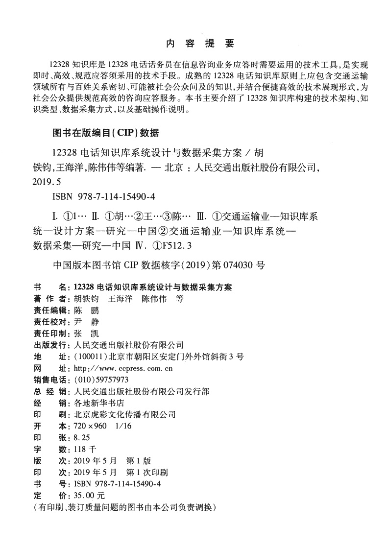 书名:12328电话知识库系统设计与数据采集方案