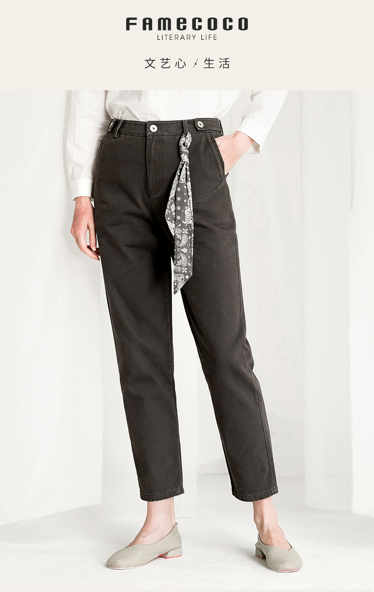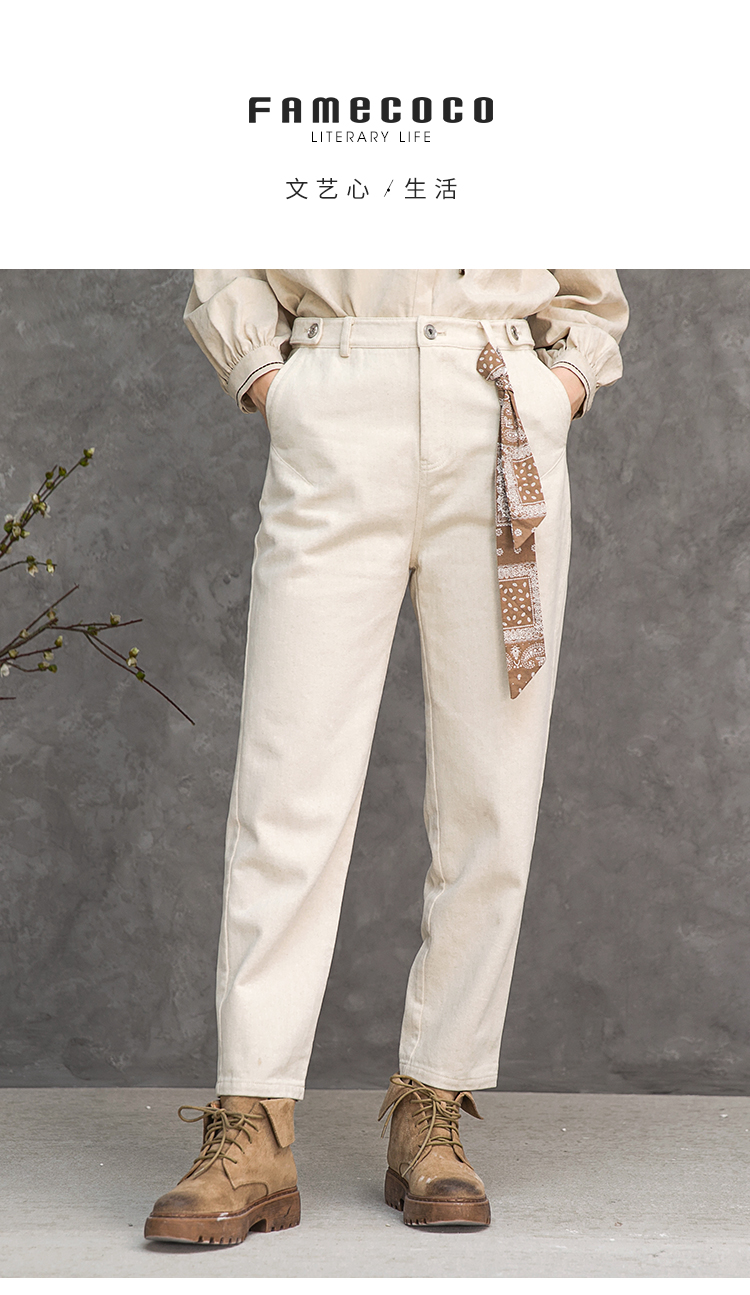 Famecoco范可儿牛仔裤时尚潮ins直筒裤F218GA015