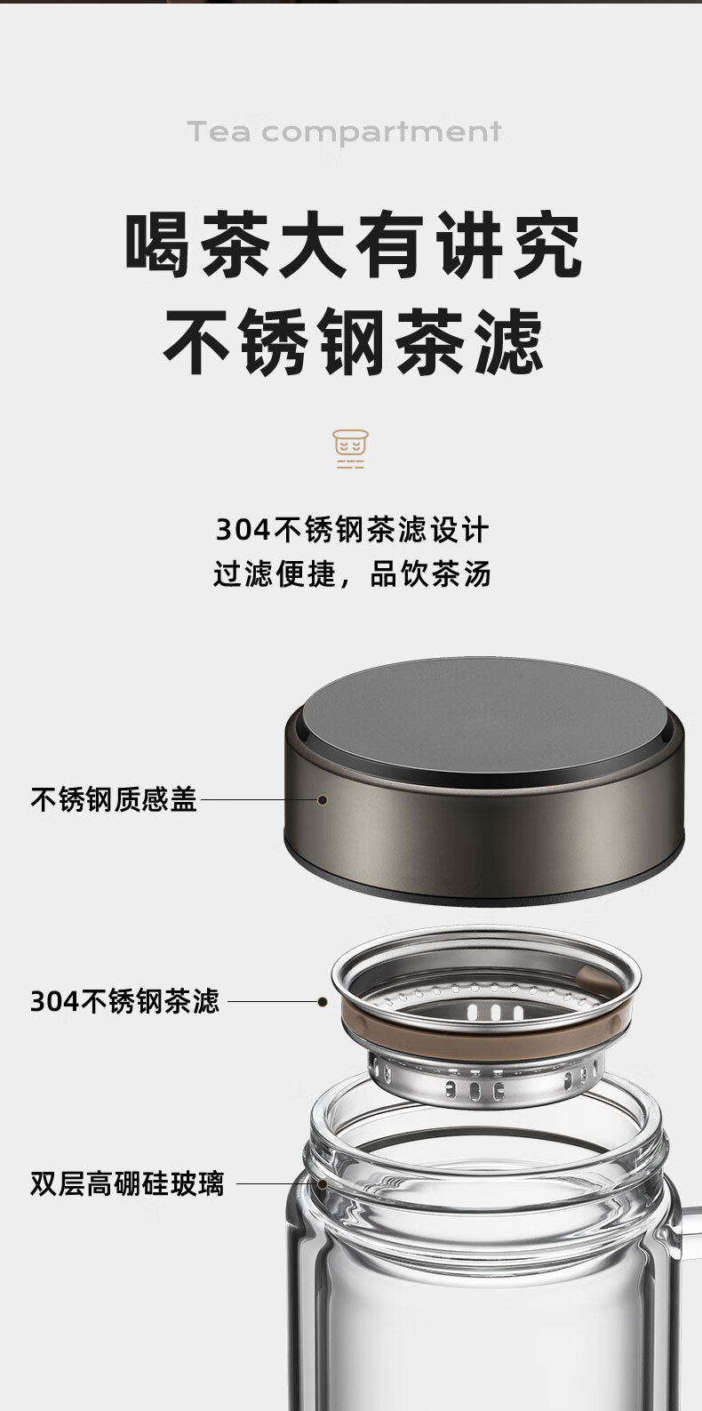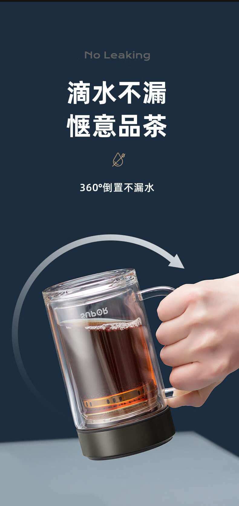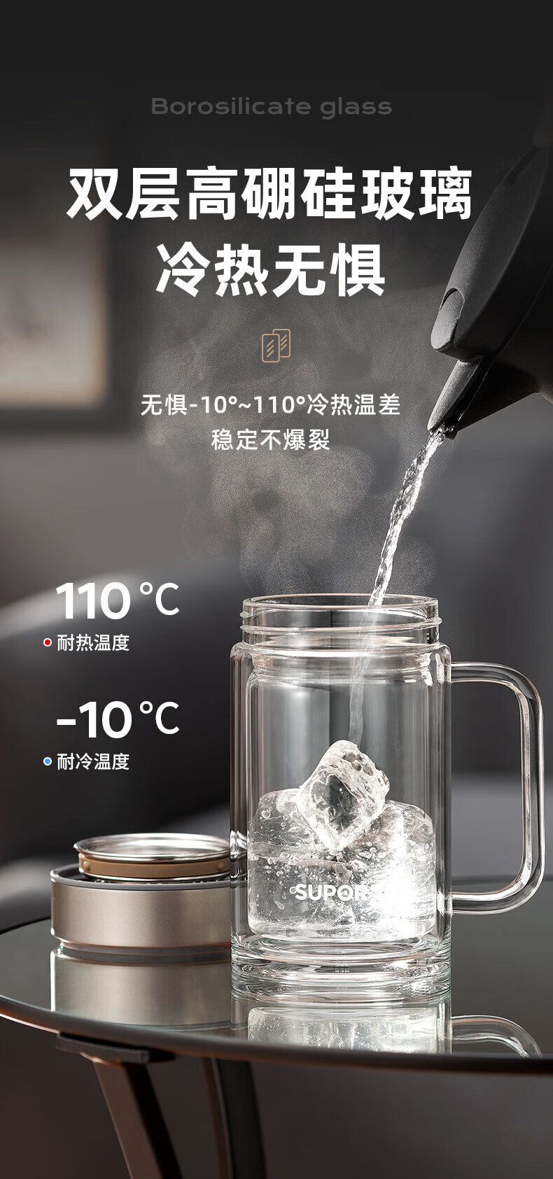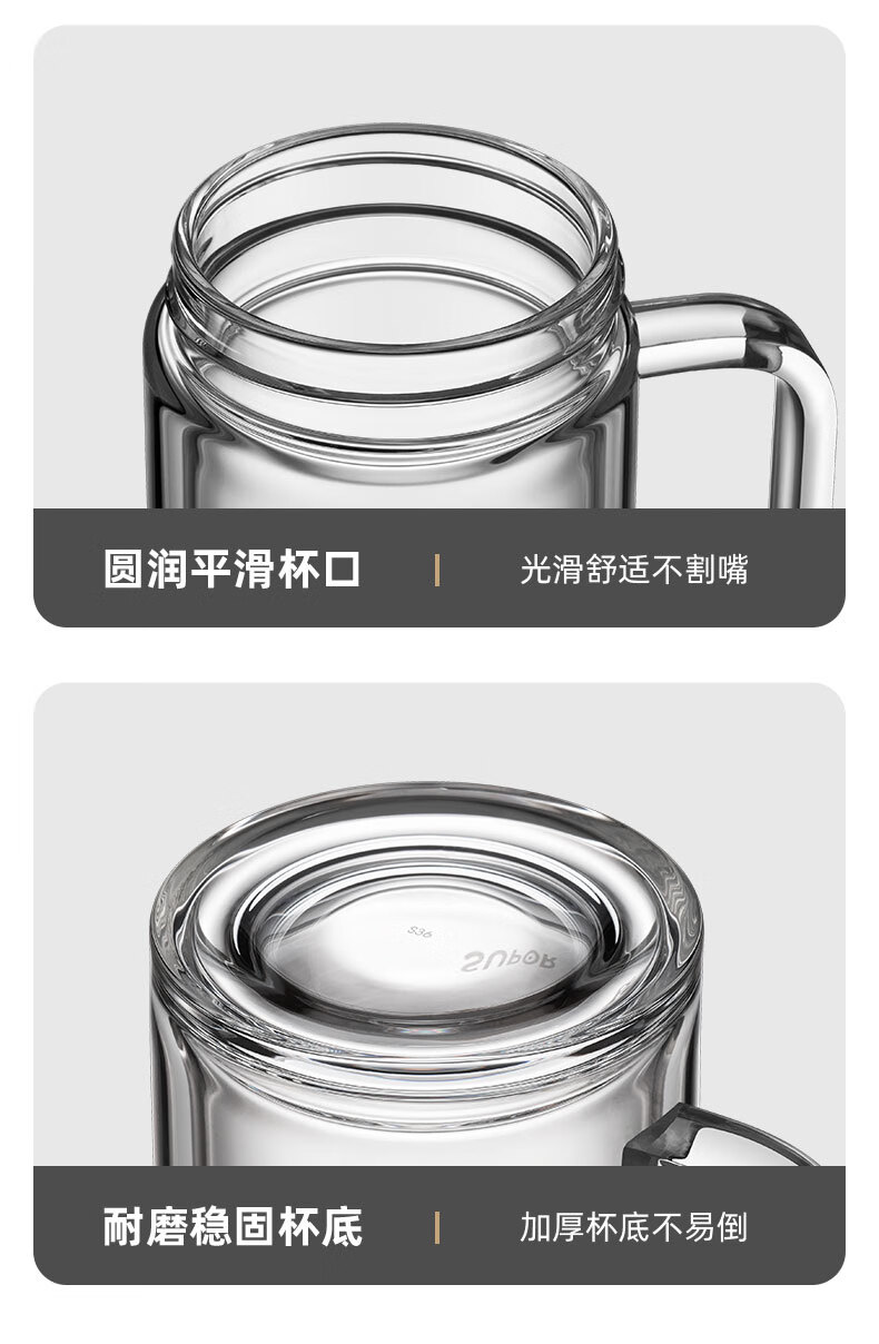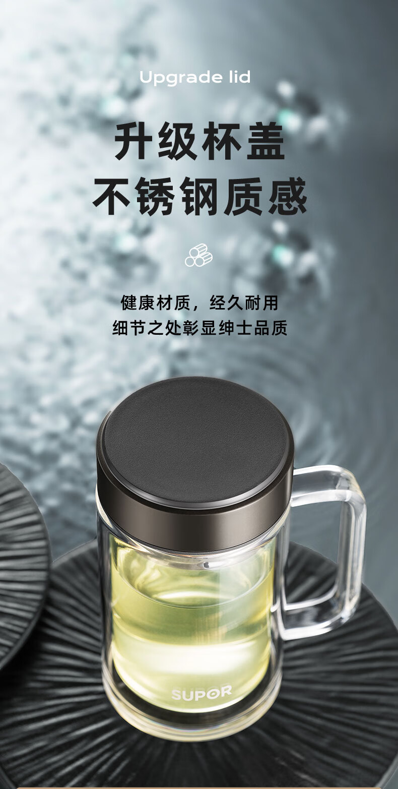 苏泊尔(SUPOR)苏泊尔玻璃杯双层耐热办公杯简系列带把手泡茶杯男女办公室大容量水杯子 KC45HK10乌木黑450ML