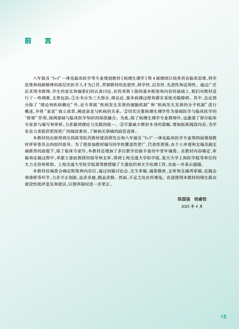 病理生理学第4版 陈国强 钱睿哲 十四五规划 全国高等学校教材 供八年制及5+3一体化临床医学等专业用9787117348416人民卫生出版社