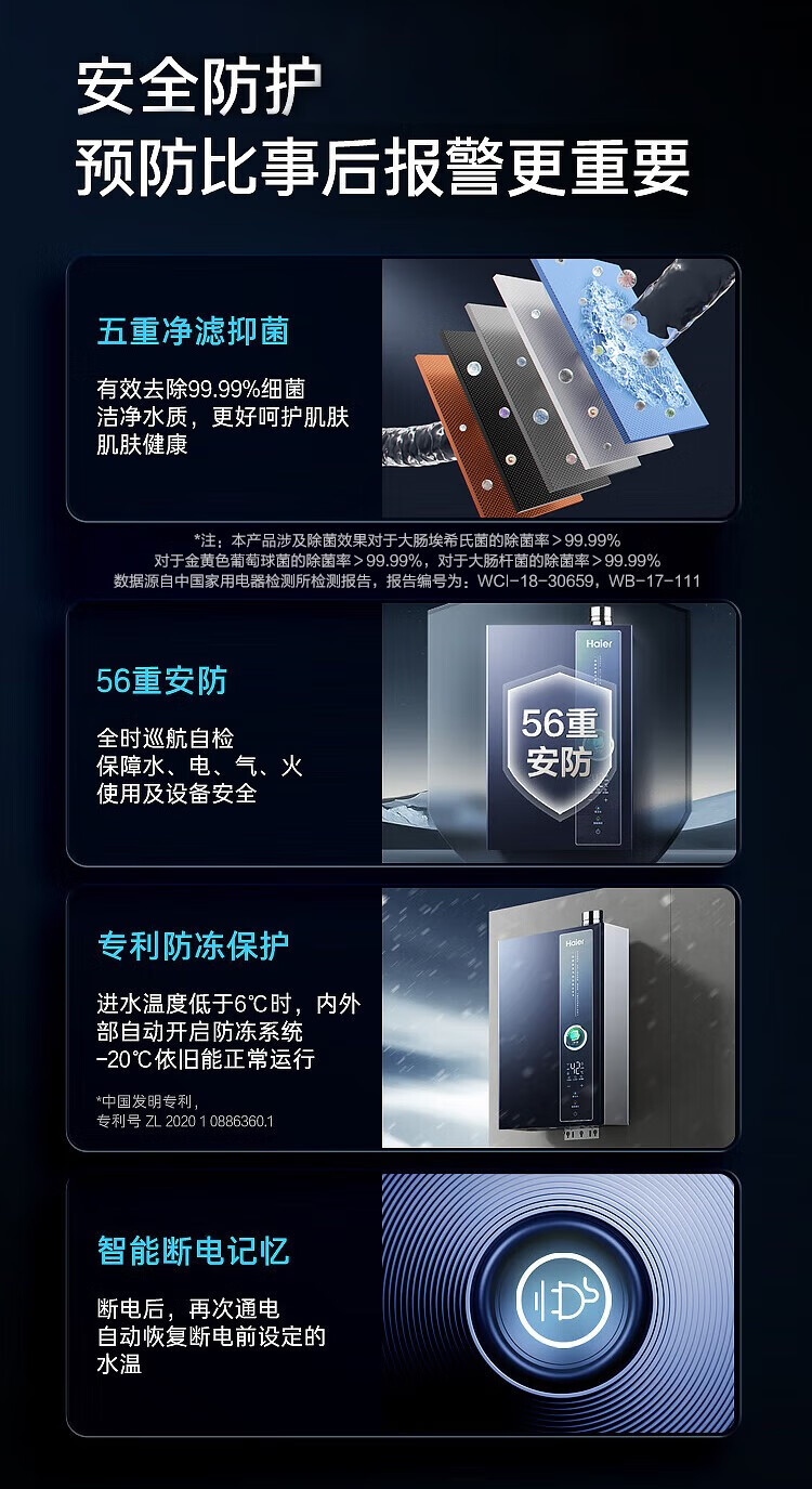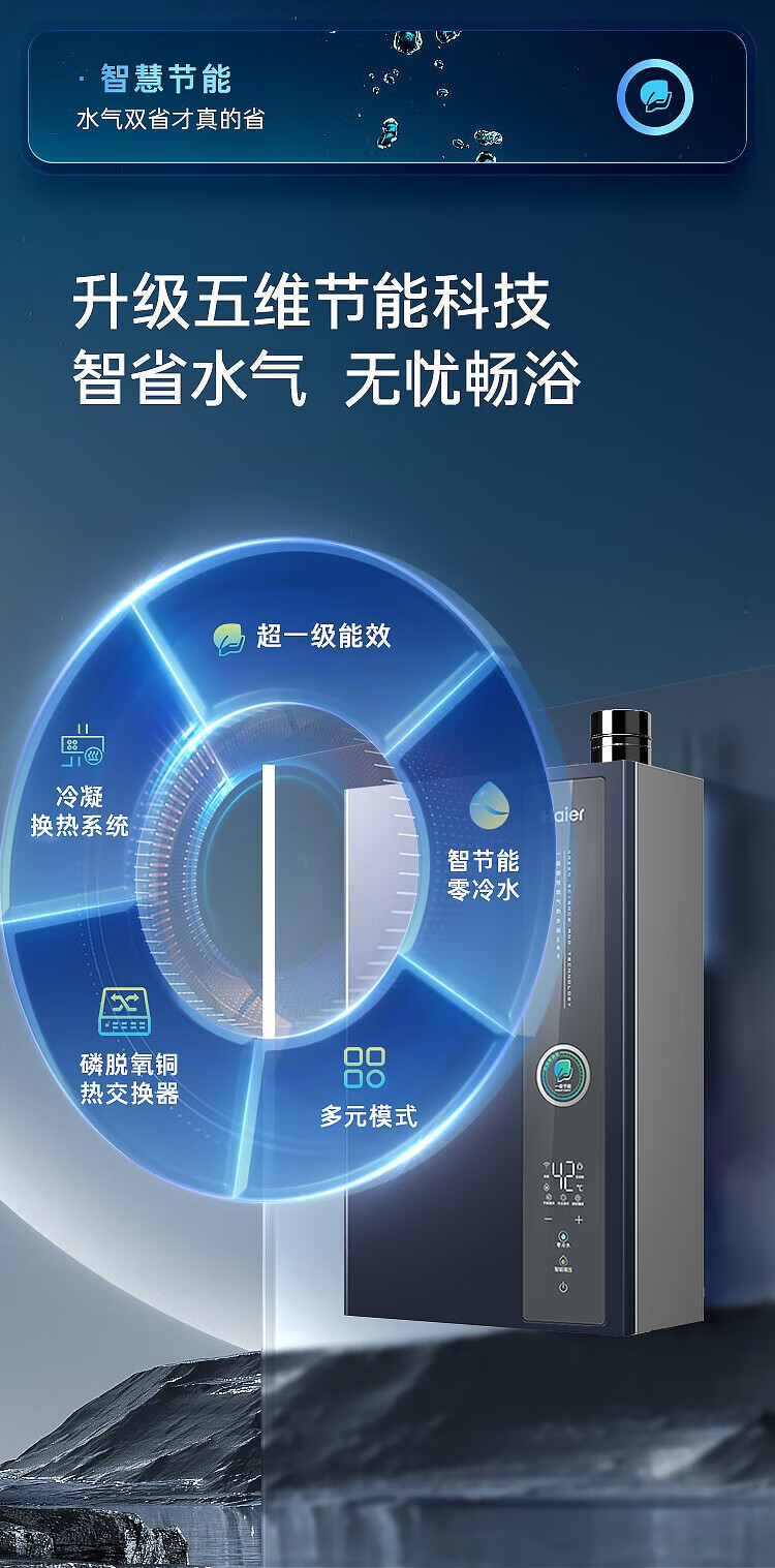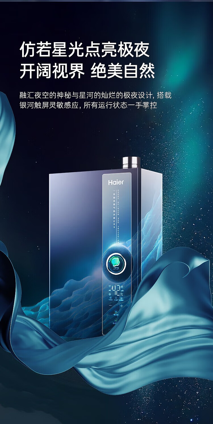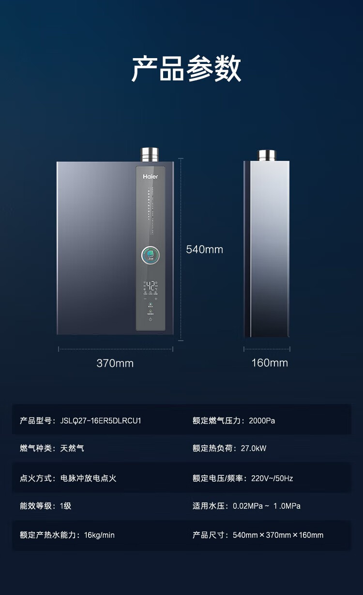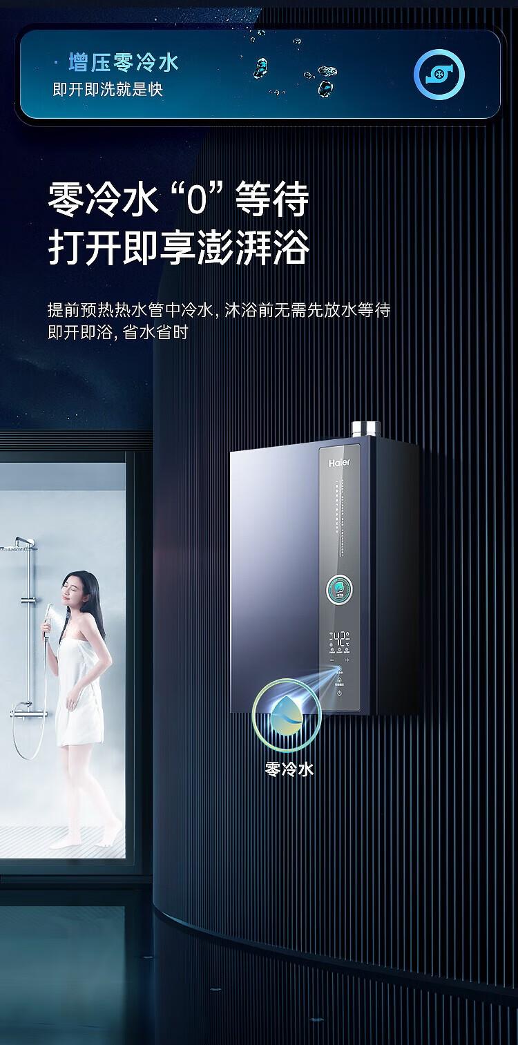 海尔16升零冷水燃气热水器水伺服恒温增压大水量ER5 海尔16升零冷水燃气热水器