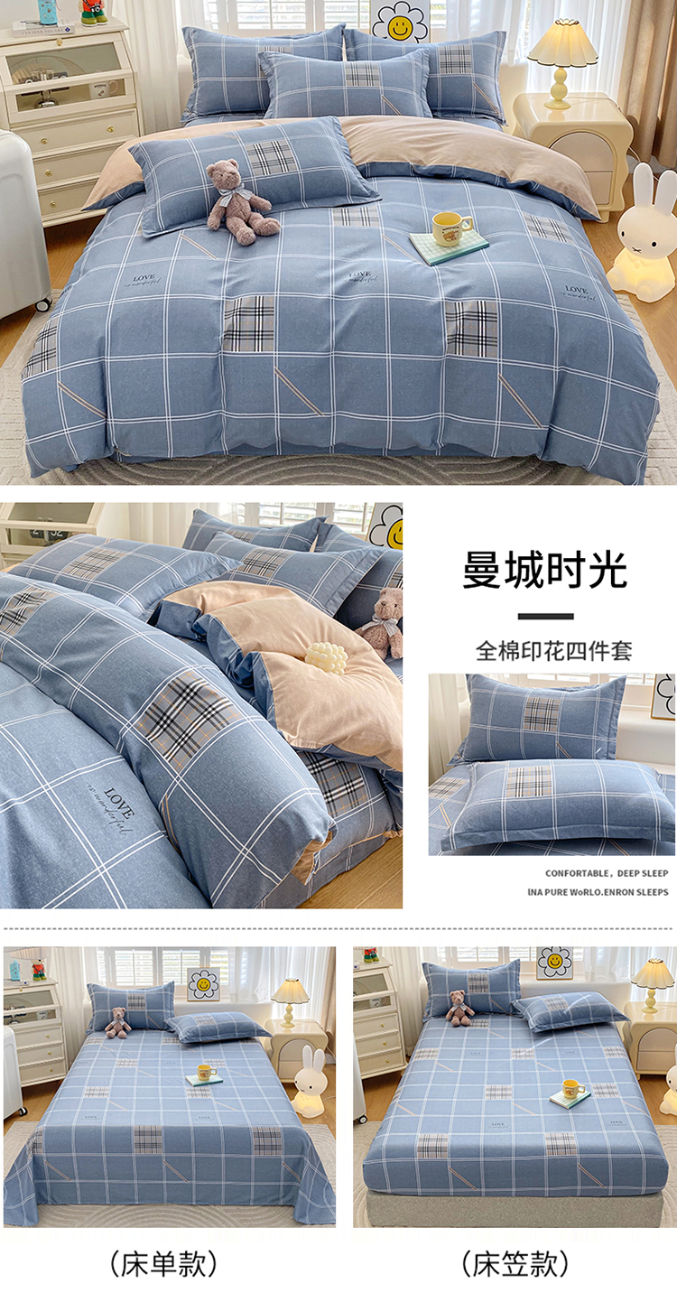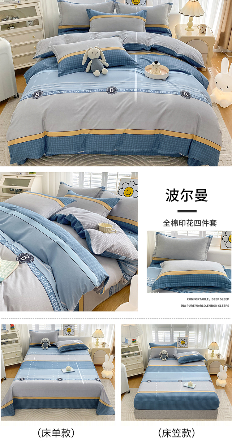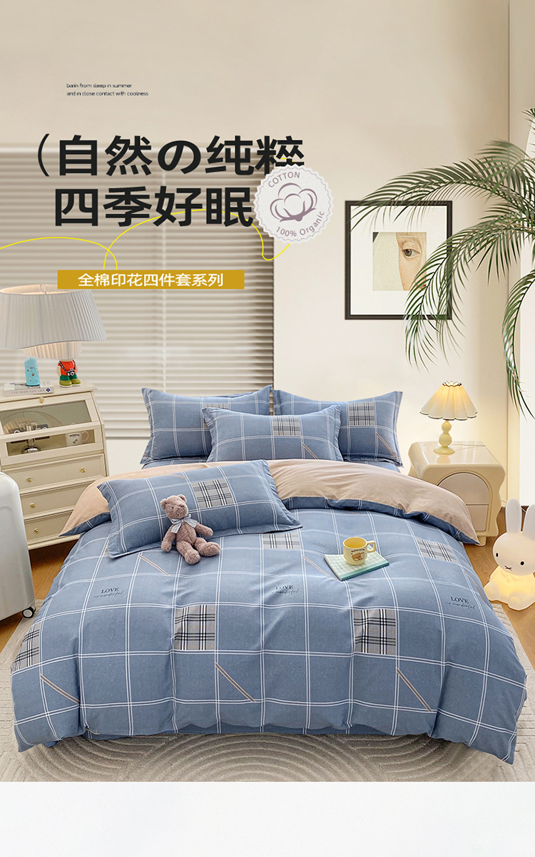 【品牌直发】加倍生活 全棉印花四件套 AB版设计 亲肤柔软 吸湿透气 四季通用