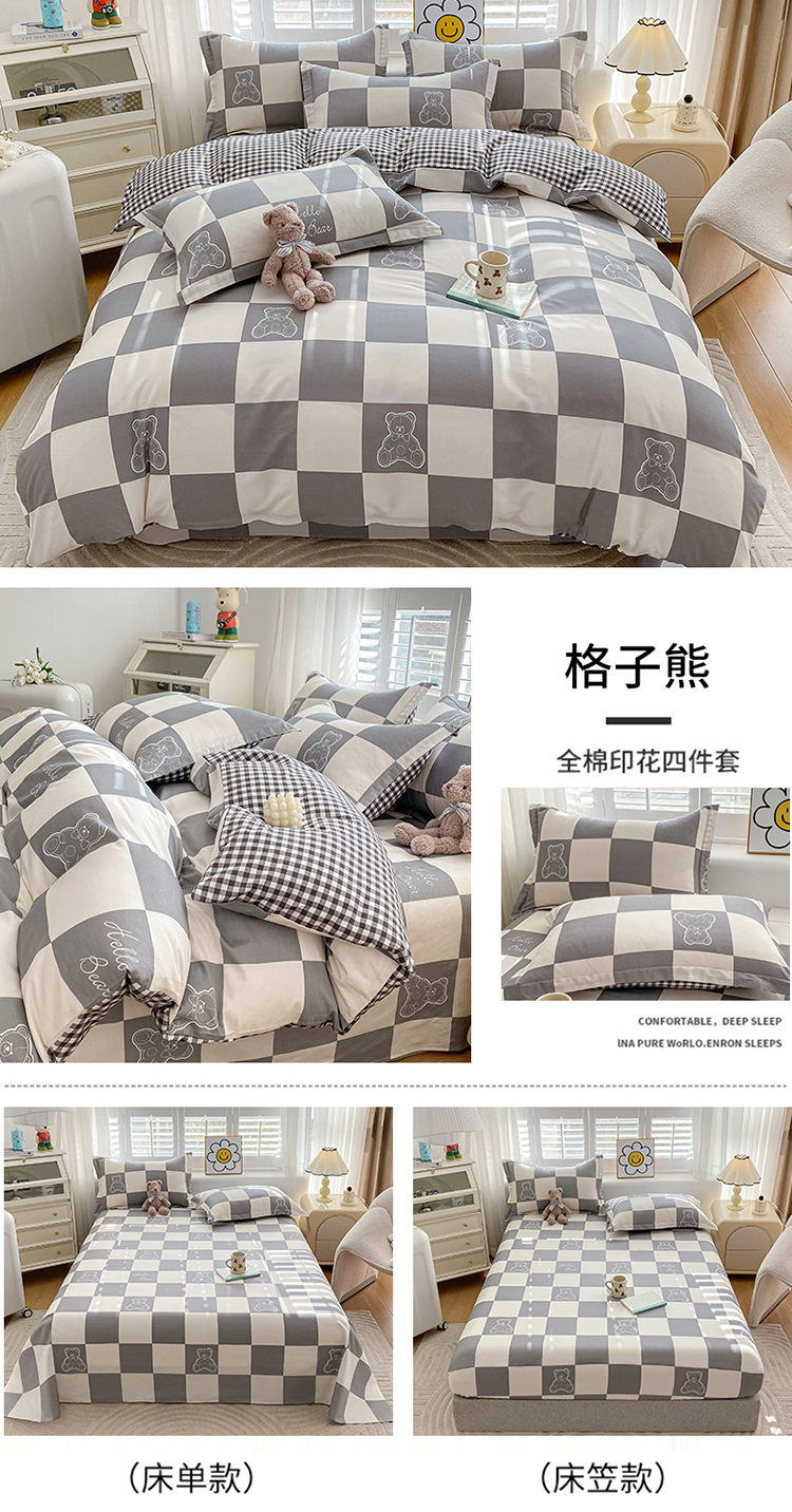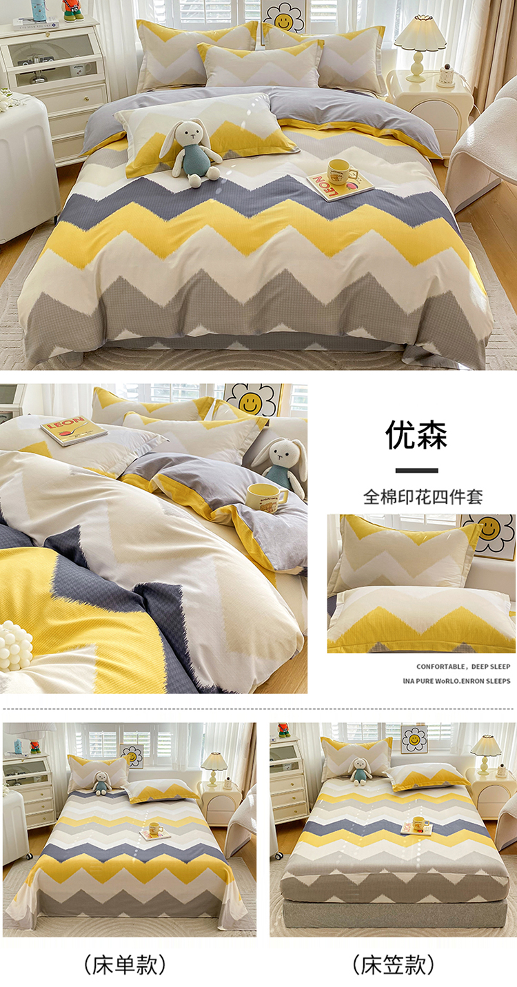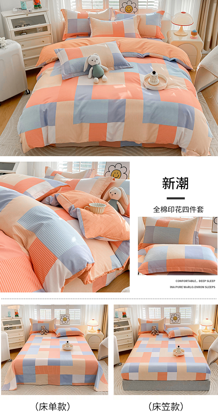 【品牌直发】加倍生活 全棉印花四件套 AB版设计 亲肤柔软 吸湿透气 四季通用