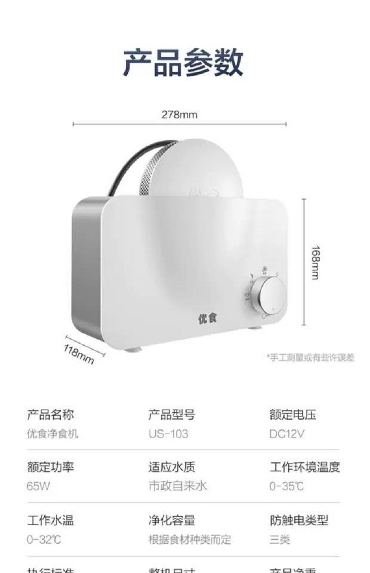 优食全智能食材净化机家用果蔬清洗机水果食品净化器消毒净食机洗菜机US-I03壁挂两用