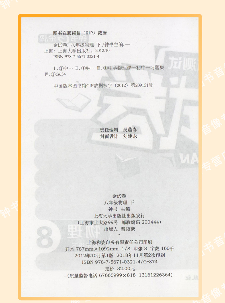 钟书金牌 金试卷 物理 八年级下/ 8年级下第二学期 上海沪教版教材配套 新 教辅 中学分成训练+单元测试卷+易错专项+期中期末卷