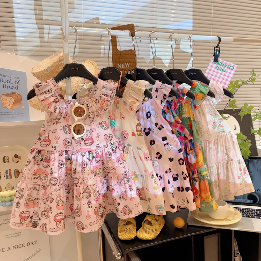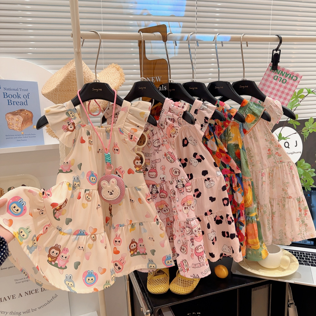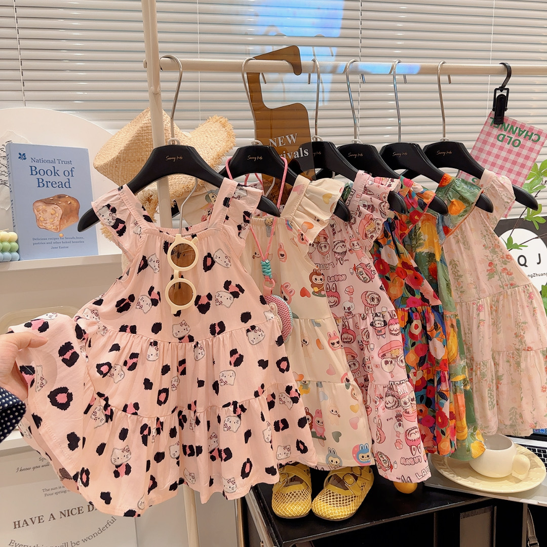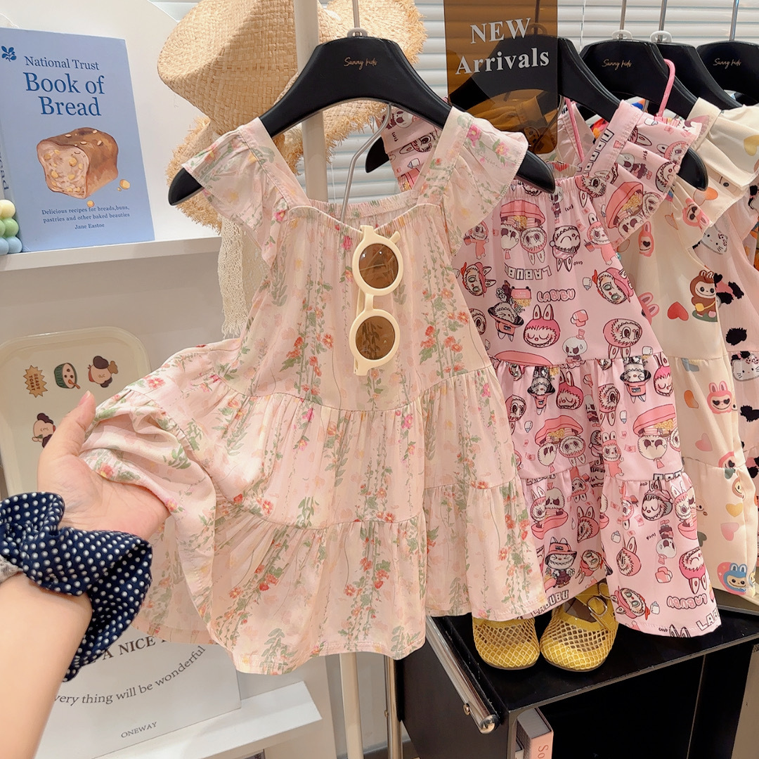 【清凉感拉满!亲肤透气】2026儿童碎花卡通休闲风夏季女连衣裙亲肤夏款轻熟风清凉感绵绸。xb