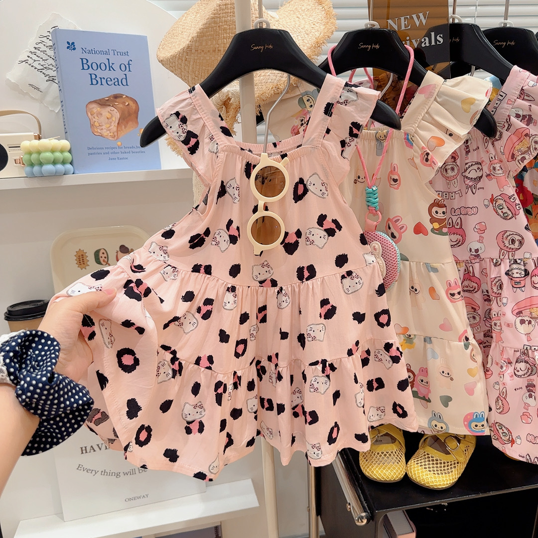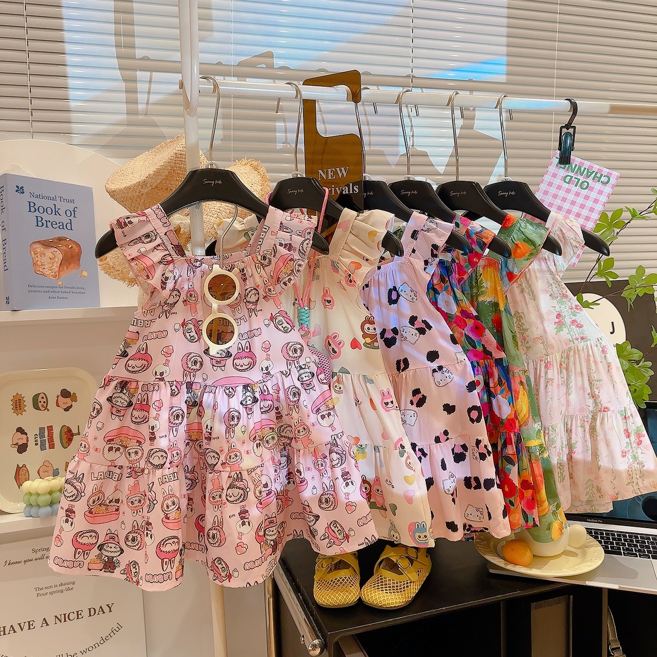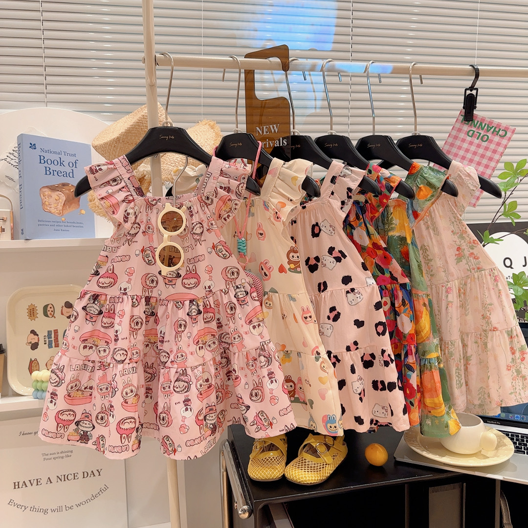 【清凉感拉满!亲肤透气】2026儿童碎花卡通休闲风夏季女连衣裙亲肤夏款轻熟风清凉感绵绸。xb