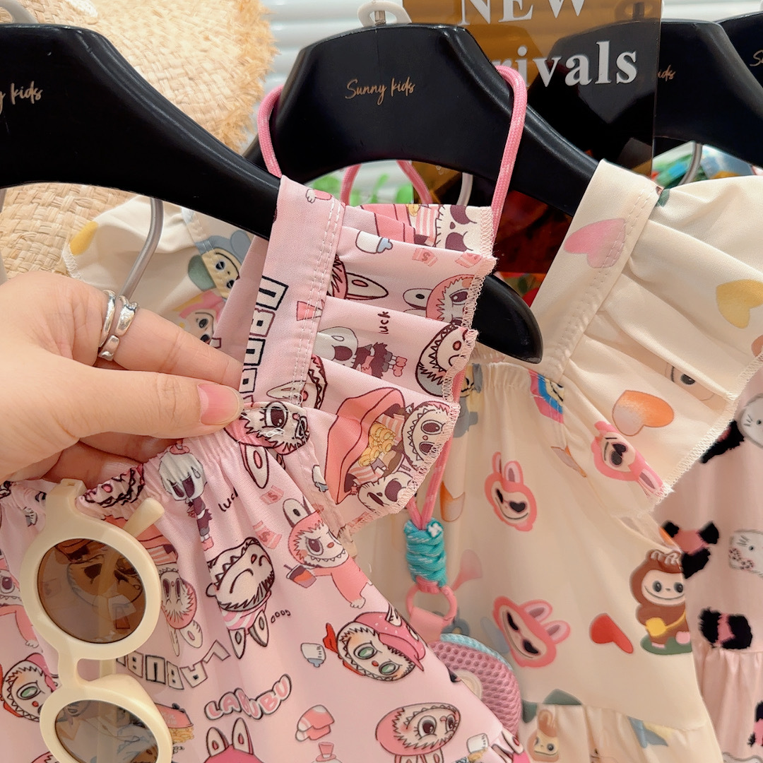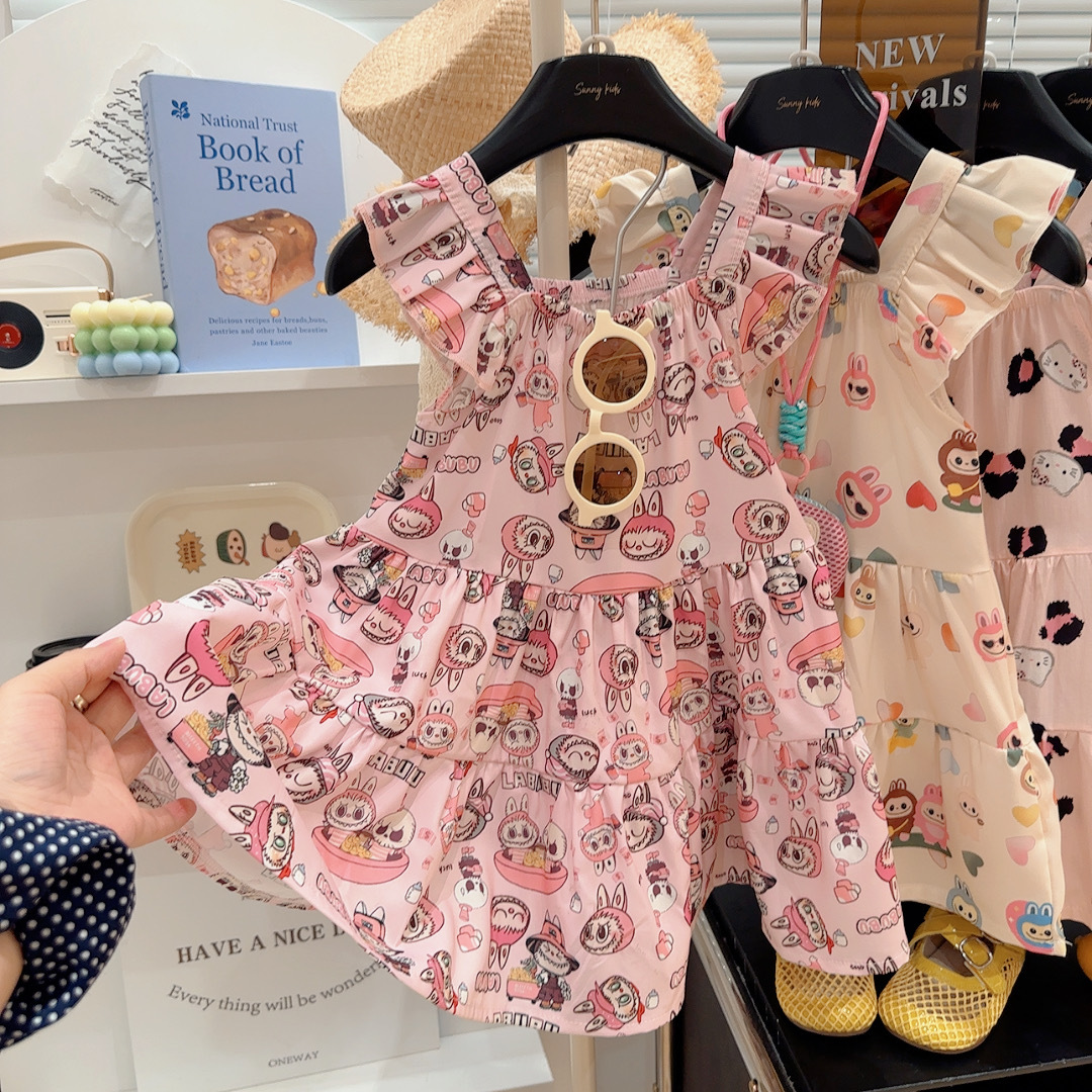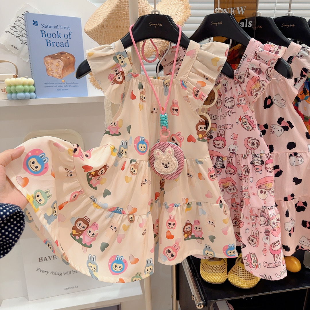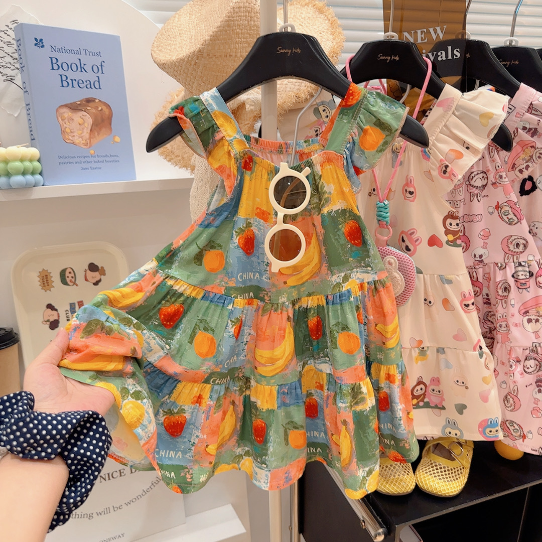 【清凉感拉满!亲肤透气】2026儿童碎花卡通休闲风夏季女连衣裙亲肤夏款轻熟风清凉感绵绸。xb