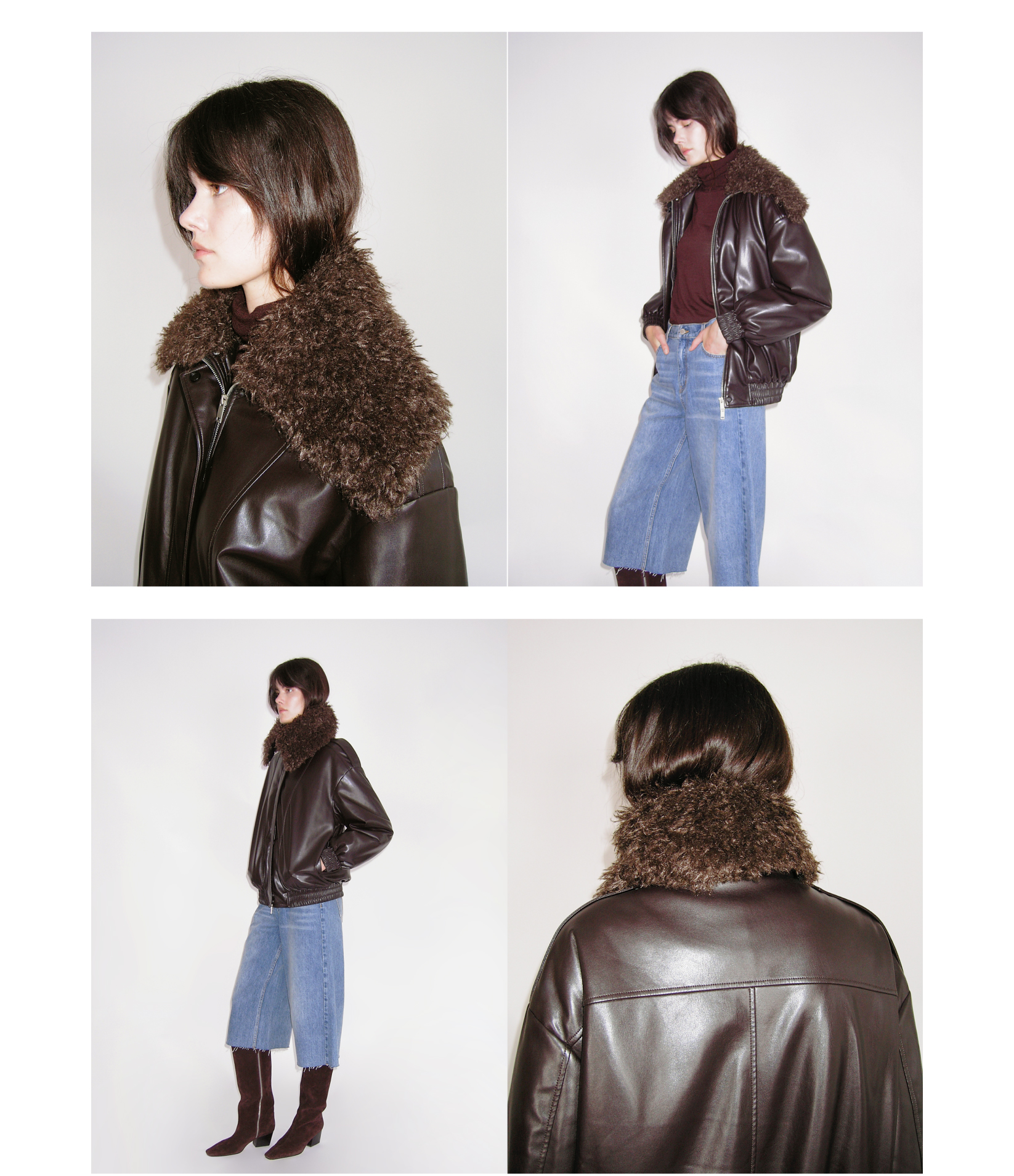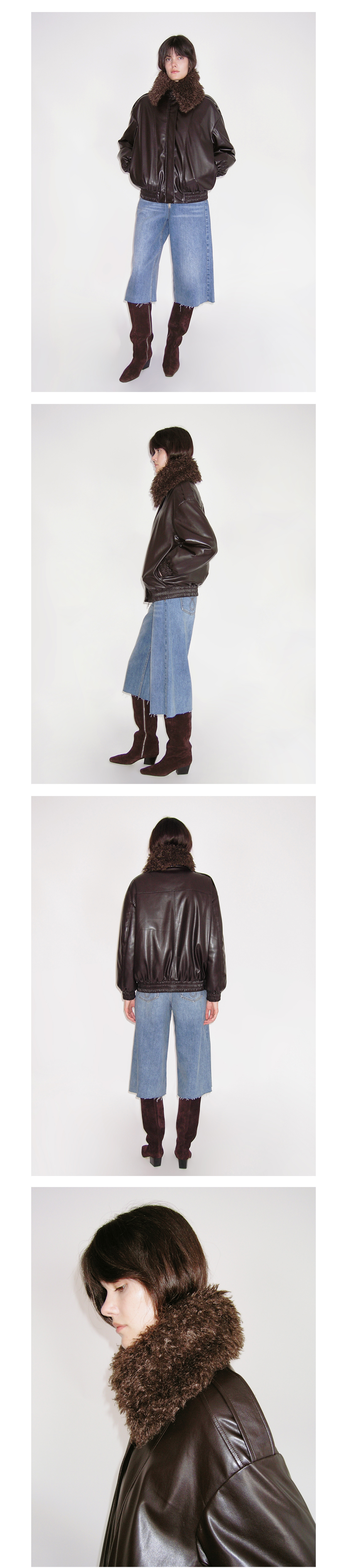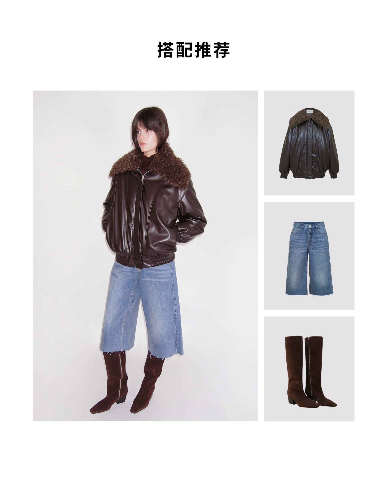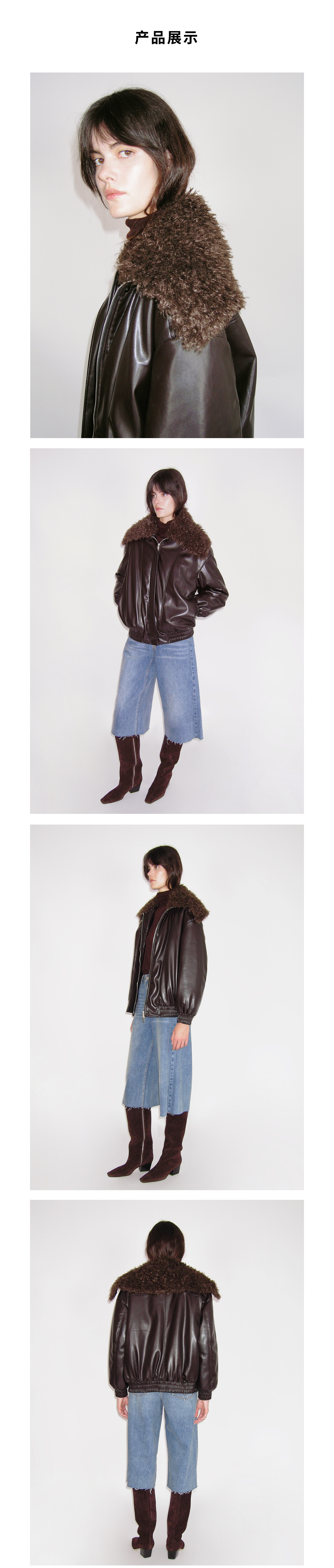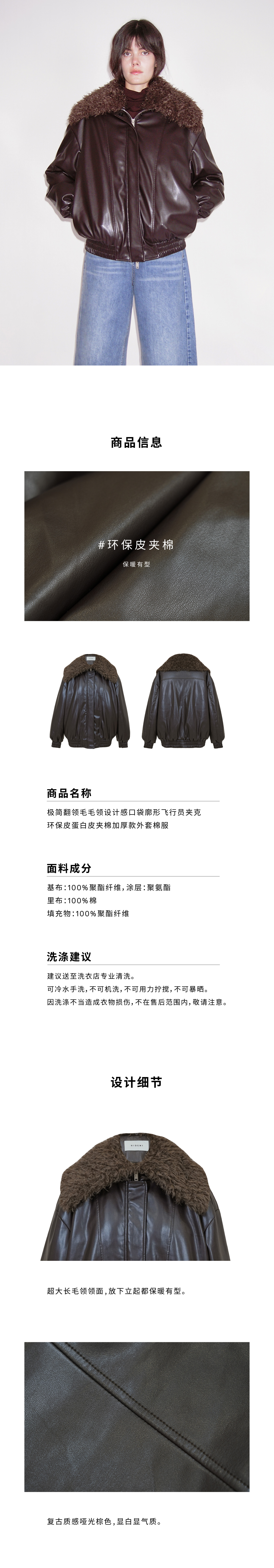 HIDEMI 极简翻领毛毛领设计感口袋廓形飞行员夹克环保皮蛋白皮夹棉加厚款外套皮棉服皮衣