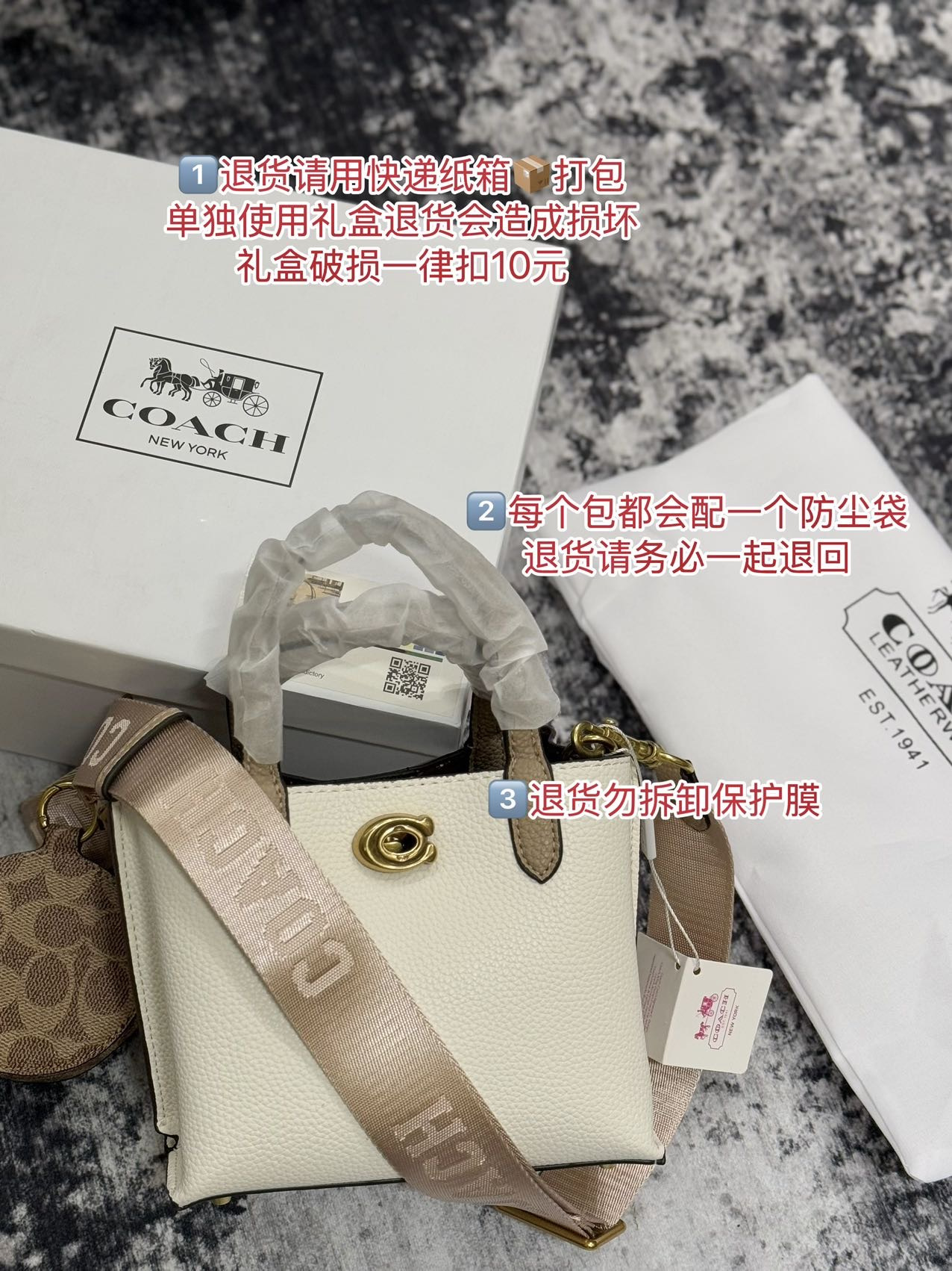 注意:如遇退换 请把包包和原包装照片发给客服登记再申请售后~