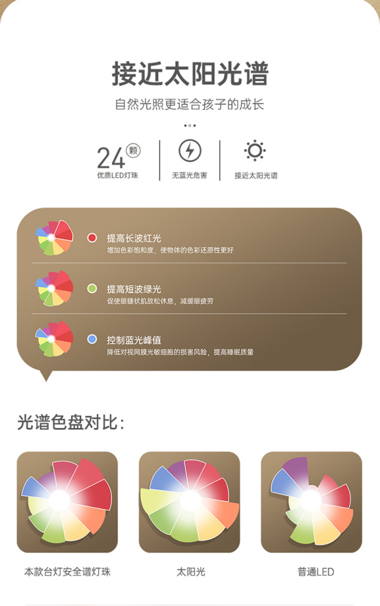 长期使用眼睛也不倦,从下面光谱图就可以看出它是模似的太阳光源。