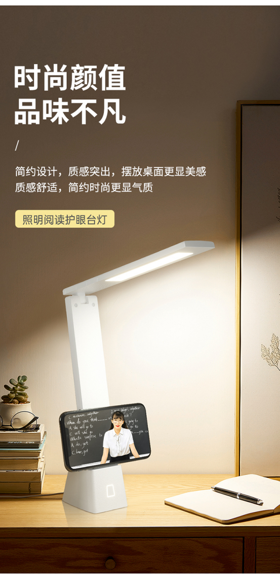 贴心便捷的设计 既是台灯也可做手机支架 支持手机横屏放置 助力线上高效学习