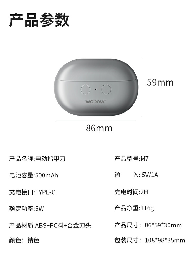 热卖中!!2025沃品电动指甲刀M7旗舰版(切/削/磨三合一)安全不伤手