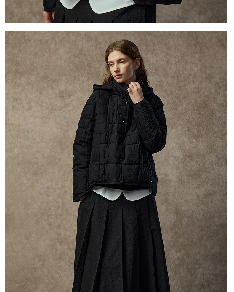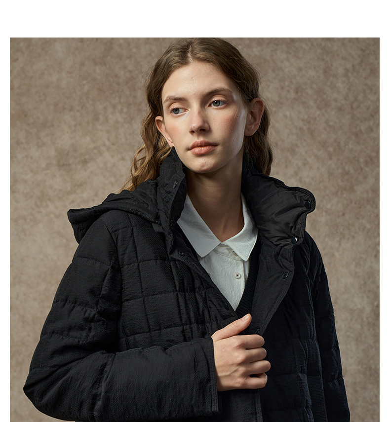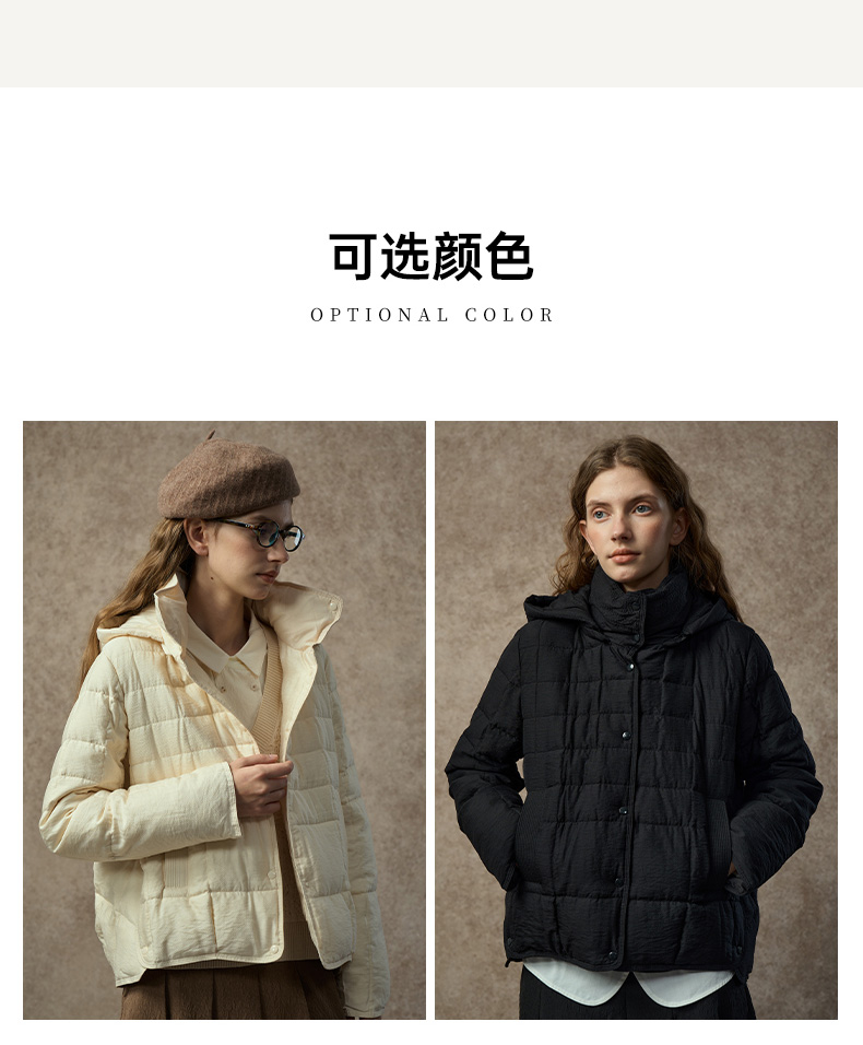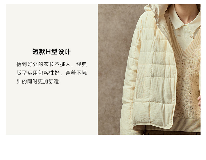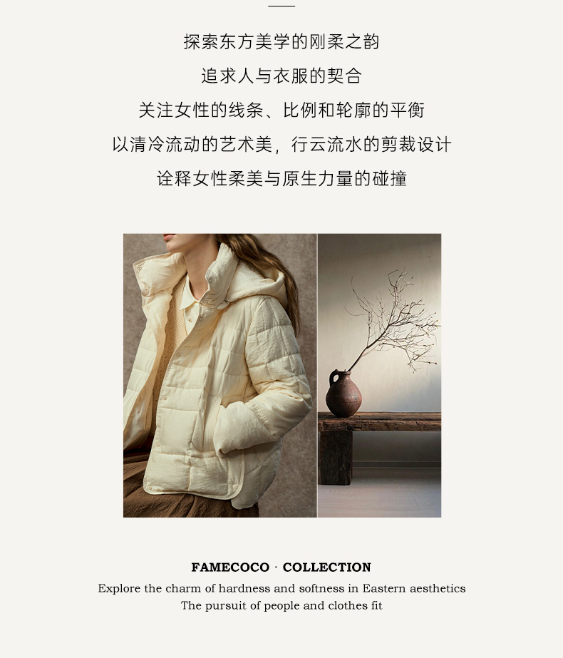 Famecoco范可儿立领连帽宽松休闲短款轻薄羽绒服FAC8AJ002