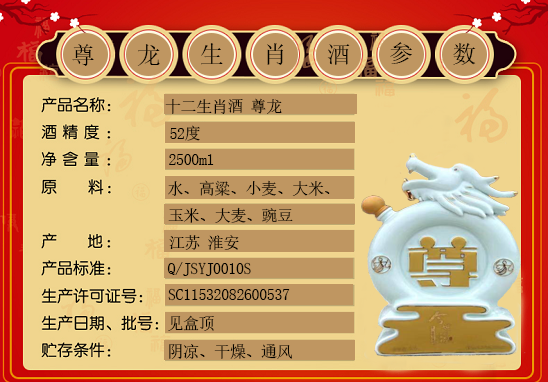 52度2.5L今世缘十二生肖尊龙珍藏纪念酒