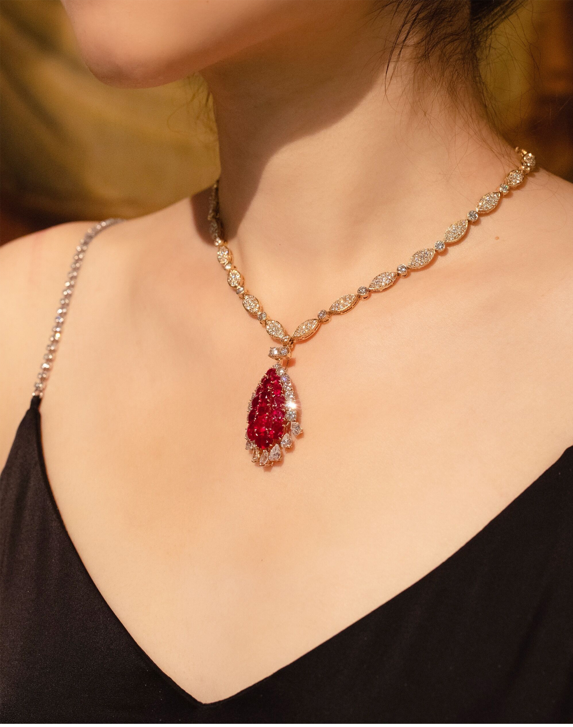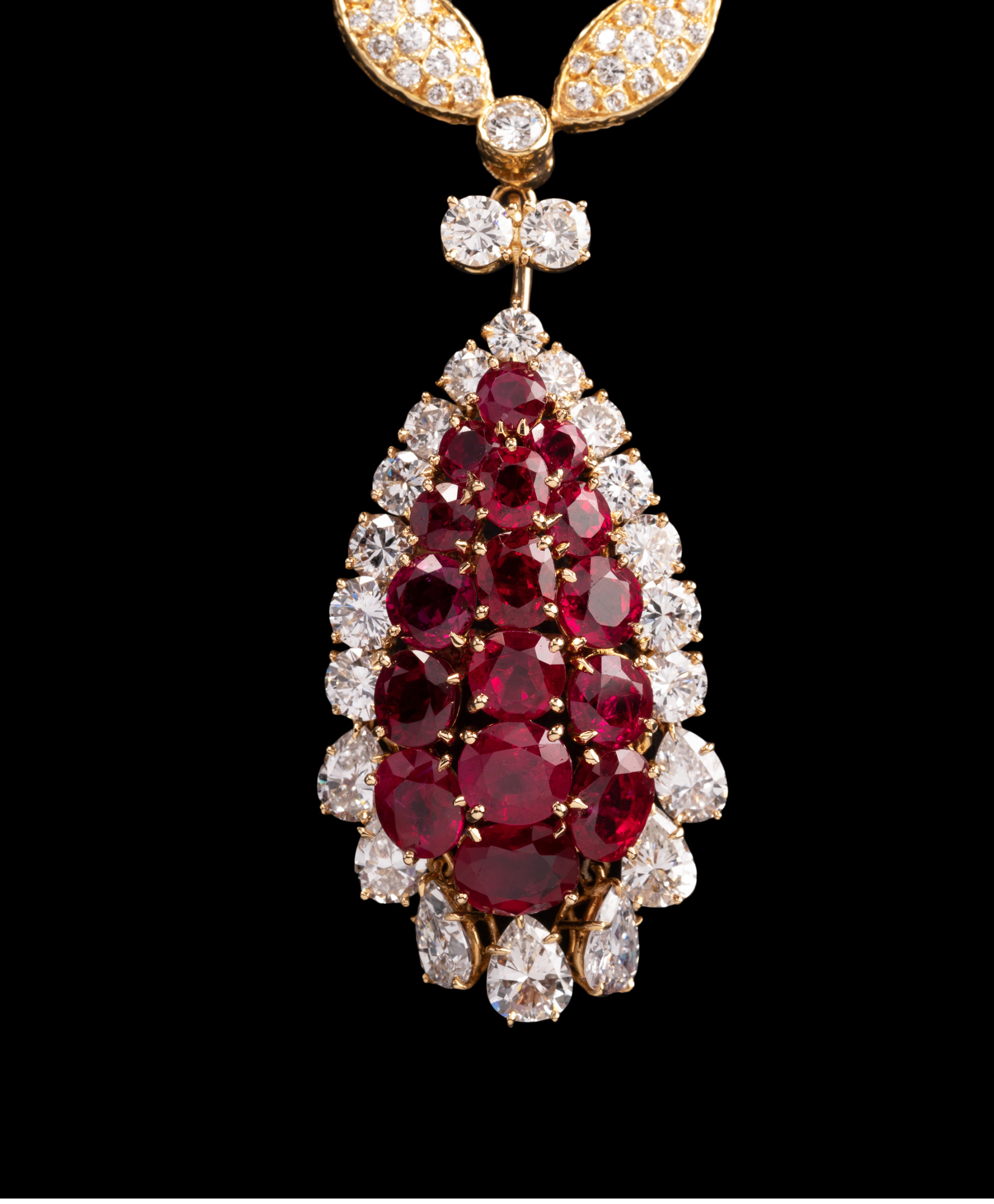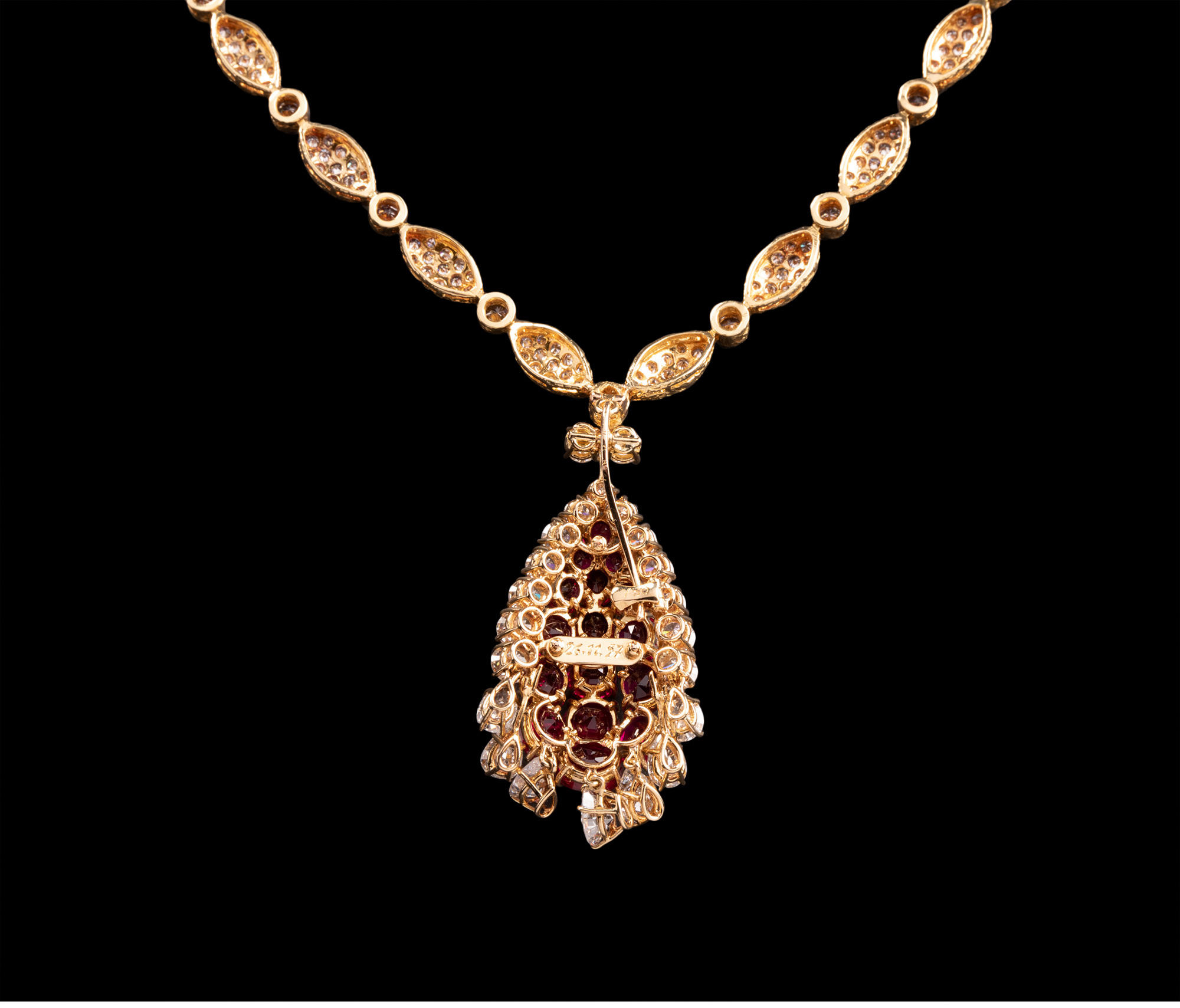 独角鹿西洋古董首饰珠宝法国18K金镶嵌钻石红宝石吊坠项链